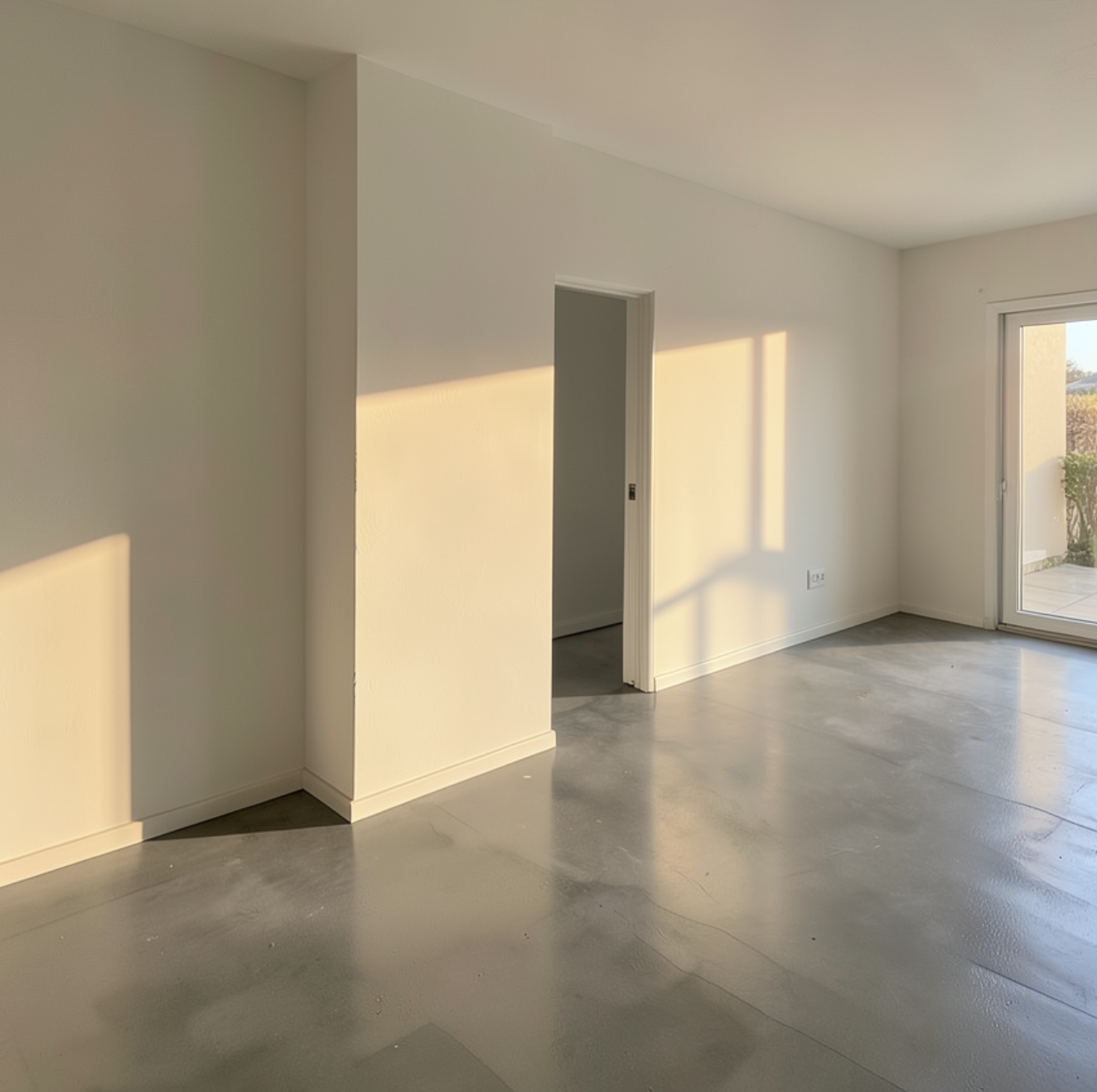 add a full height wainscot and a sofa with a chaise longue with a rug create an ambient with neutral tones and a cozy illumination with a floor lamp