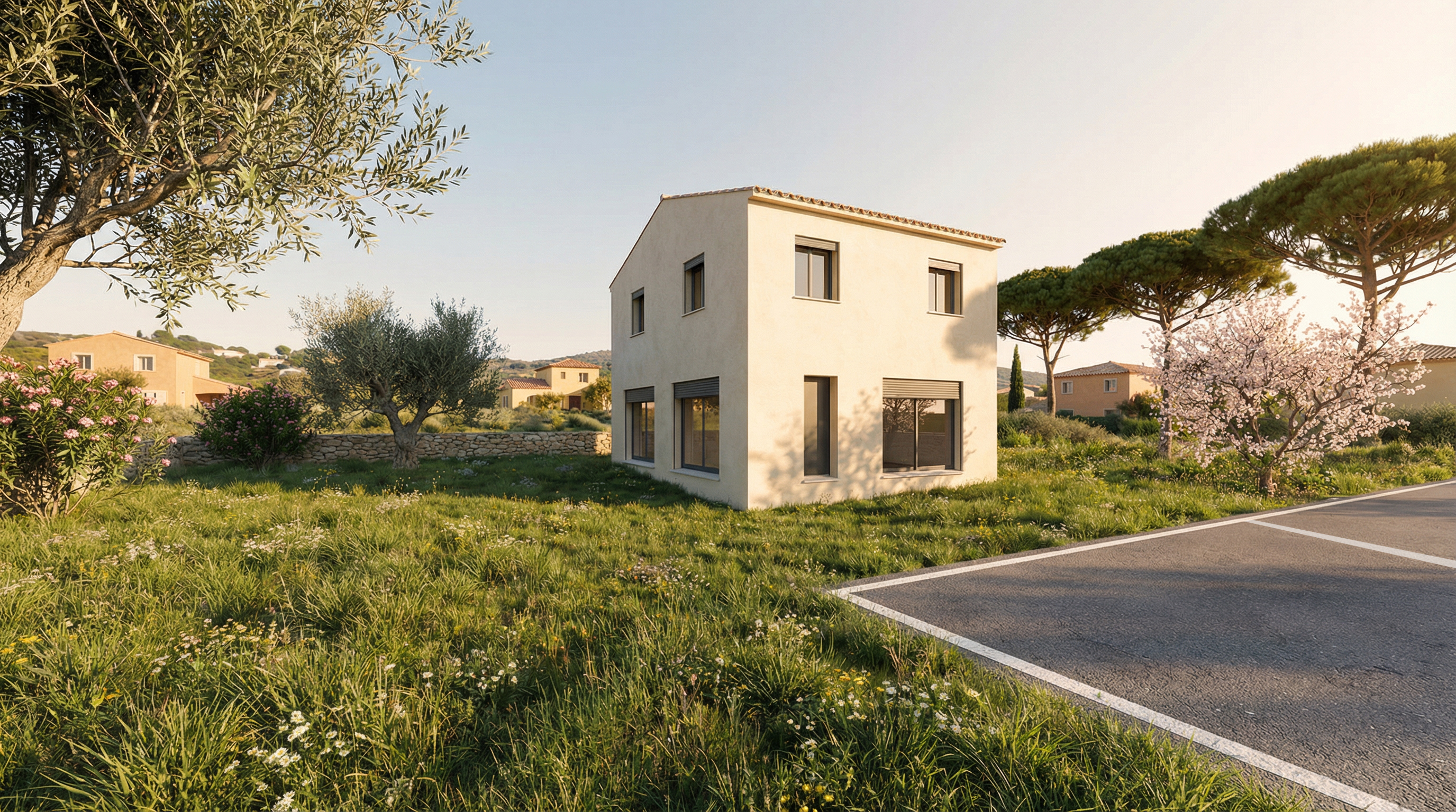 there is a small concrete cap above the front door and the window on the right is a window and not a full height bay la fen tre is just a little bit smaller on the height