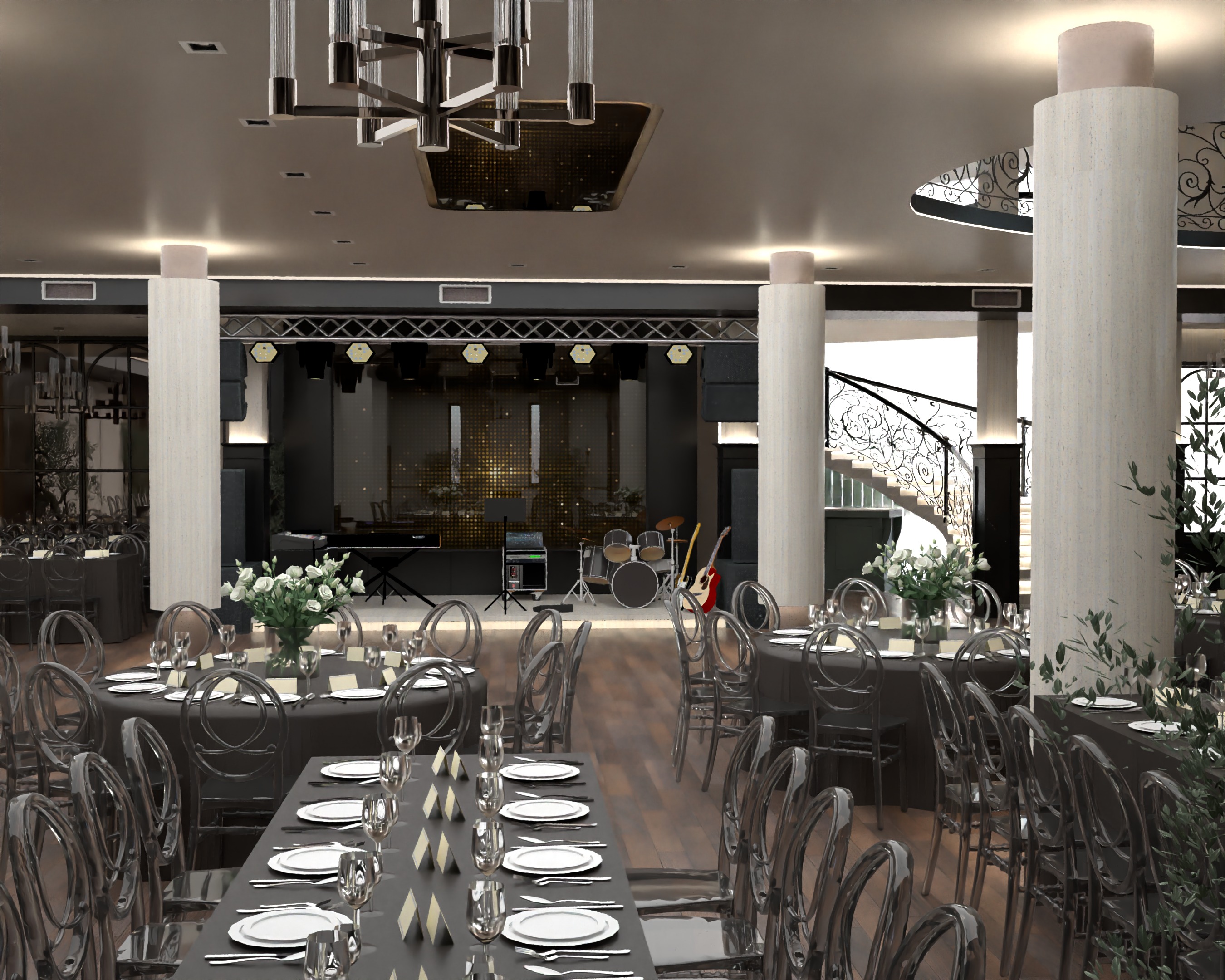 ultra photorealistic corona renderer style interior visualization architectural photography preserve original architecture preserve exact geometry preserve layout preserve furniture preserve materials realism enhancement only no redesign physical based rendering accurate global illumination ray tracing soft contact shadows ambient occlusion realistic light bounce color bleeding ultra realistic materials with correct pbr values realistic roughness subtle imperfections micro surface details fine texture depth natural material variation professional interior photography full frame camera 24mm lens correct exposure realistic dynamic range soft highlight rolloff natural daylight simulation realistic window light soft indirect lighting cinematic but natural balance corona renderer v ray unreal engine 5 quality 8k resolution ultra sharp extremely detailed photorealistic professional archviz architectural digest magazine quality no design change no new objects no new furniture no layout change no geometry change enhancement only preserve everything reduce the intensity of natural daylight entering the space decrease exterior brightness and window light exposure to create a softer more controlled interior lighting atmosphere prioritize warm ambient and artificial lighting from chandeliers and interior fixtures maintain balanced exposure with subtle shadows and a more intimate evening mood suitable for a luxury wedding restaurant do not change the architecture window positions layout or design elements adjust lighting only