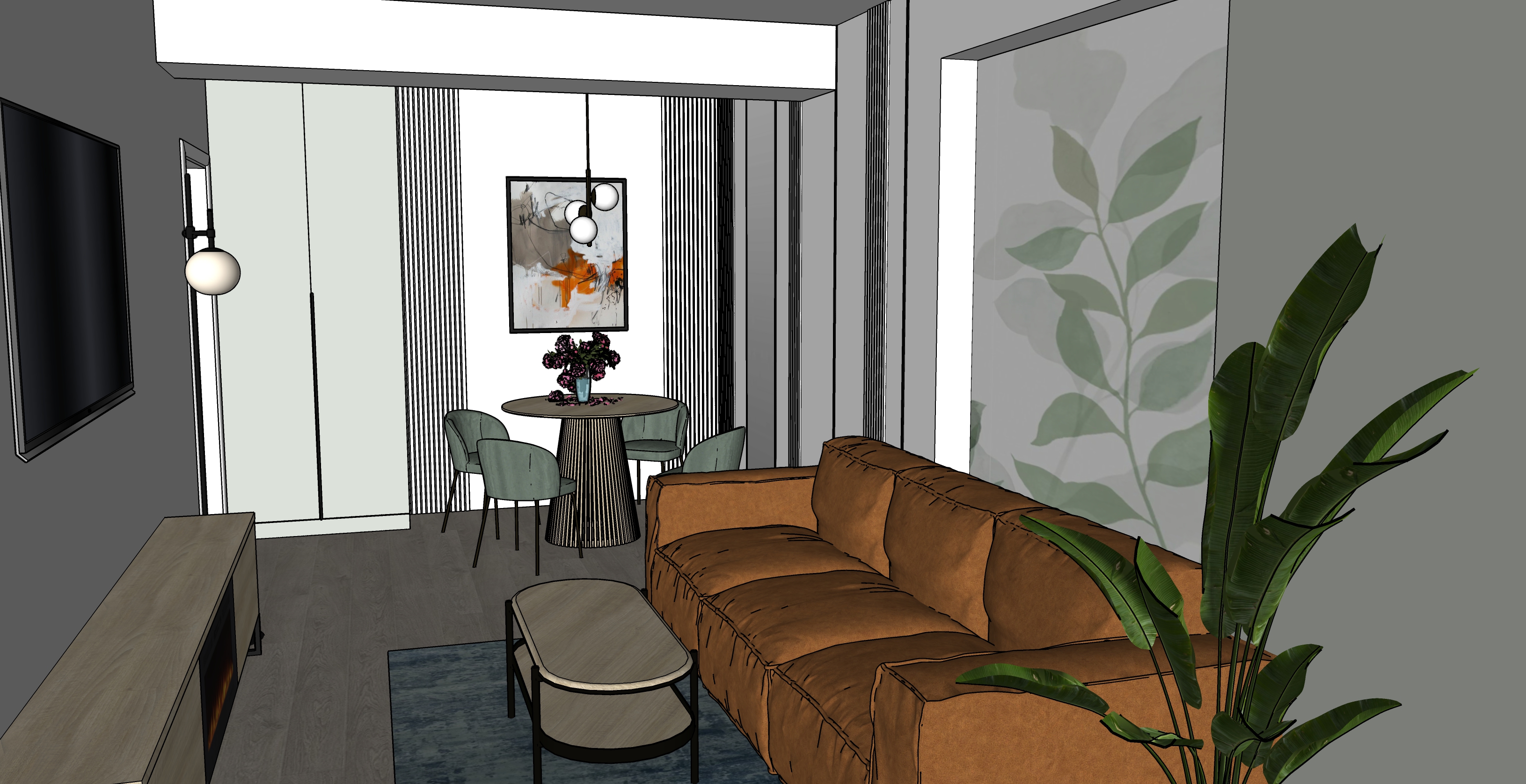 masa e janette de la kave home in dreapta mesei e o oglinda de jos pana sus cu rame metalice in spatele canapelei avem tapet peretii sunt offwhite gri deschis dulapul este hex cdd4cb