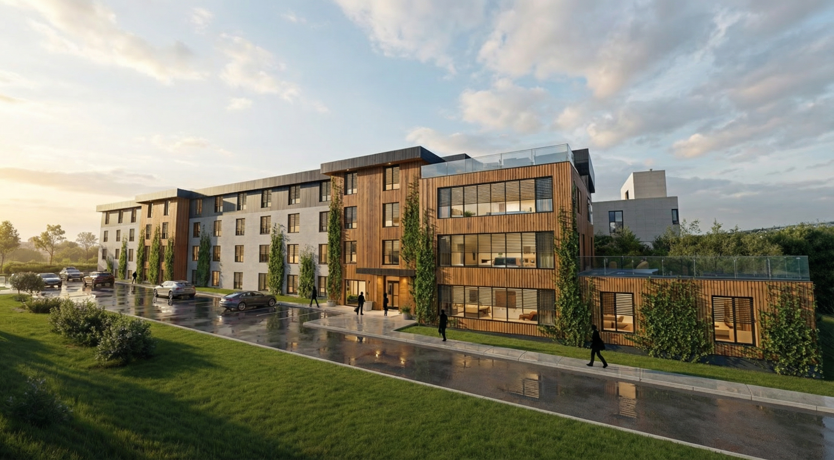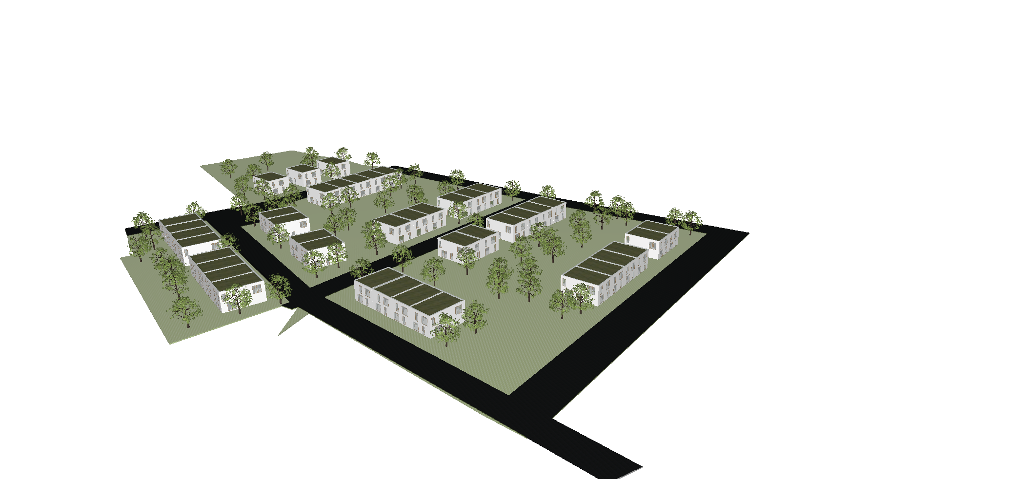 aerial shot aerial shot of 2 story minimalistic houses render realistic trees add summer light asn sky