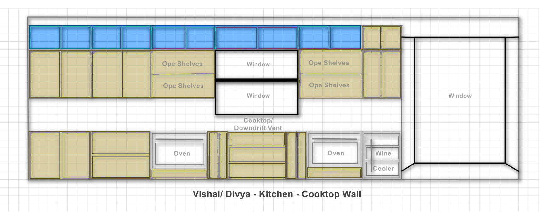 render as yellow cabinets are white oak riftcut clear coat cabinets and the blue cabinets are painted white in gloss finish all cabinets are flat panel