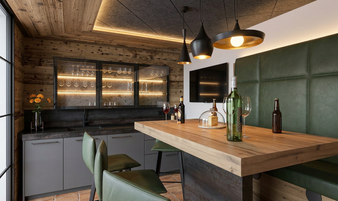 white kitchen on the right wall