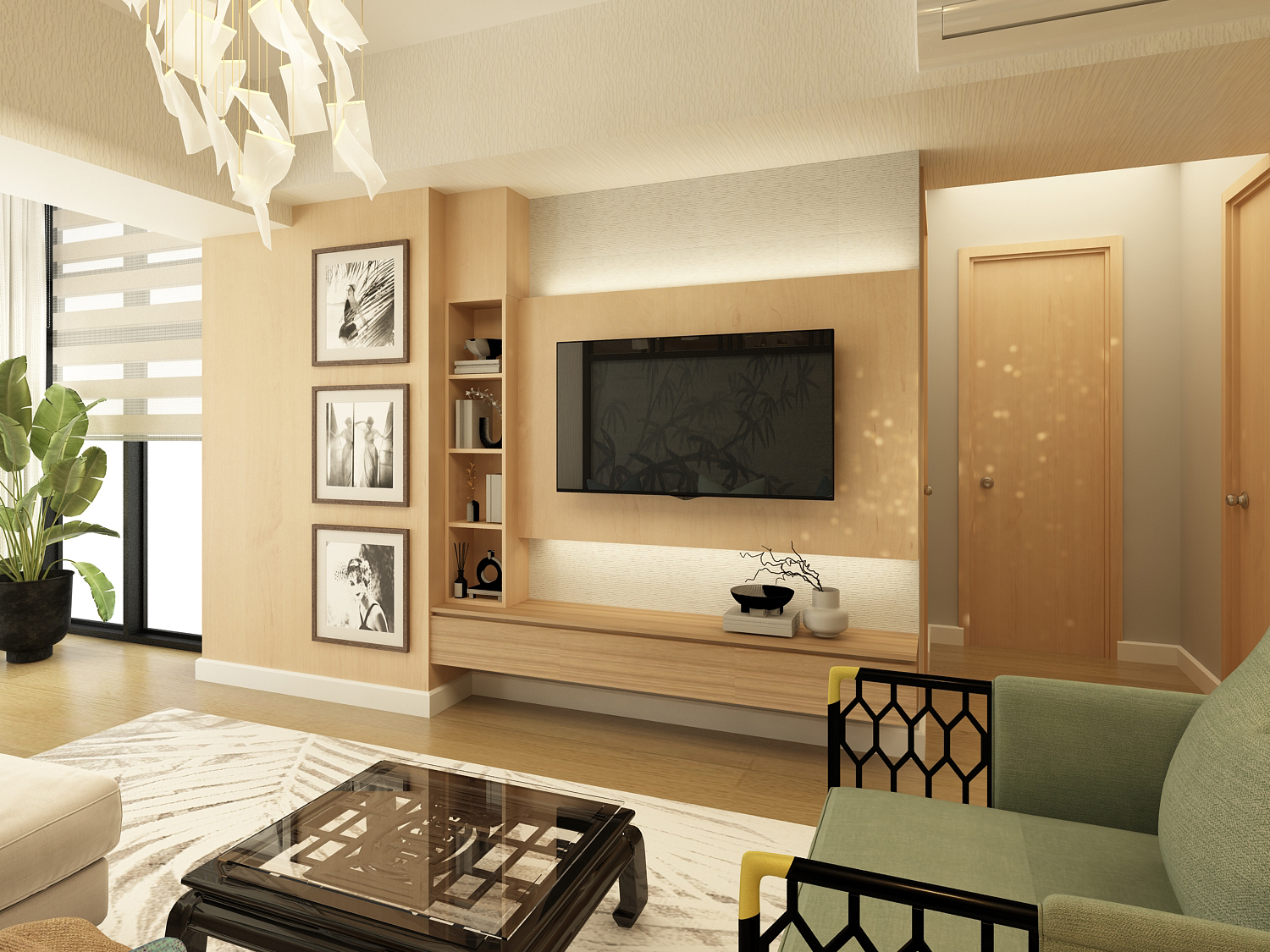 remove speckles add sparkles to chandelier add trees outside window retain detail and blinds