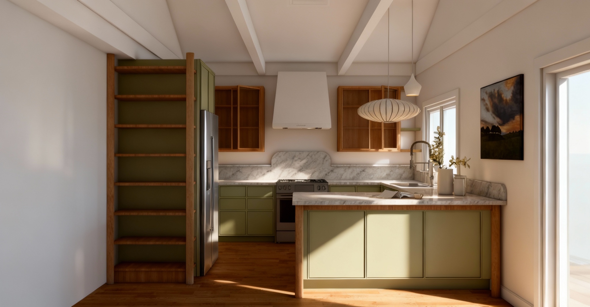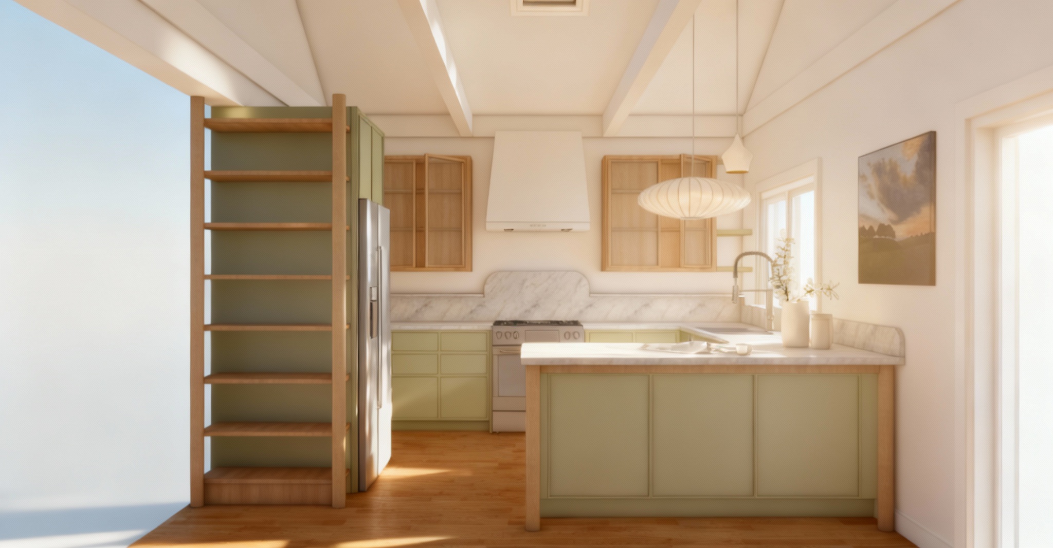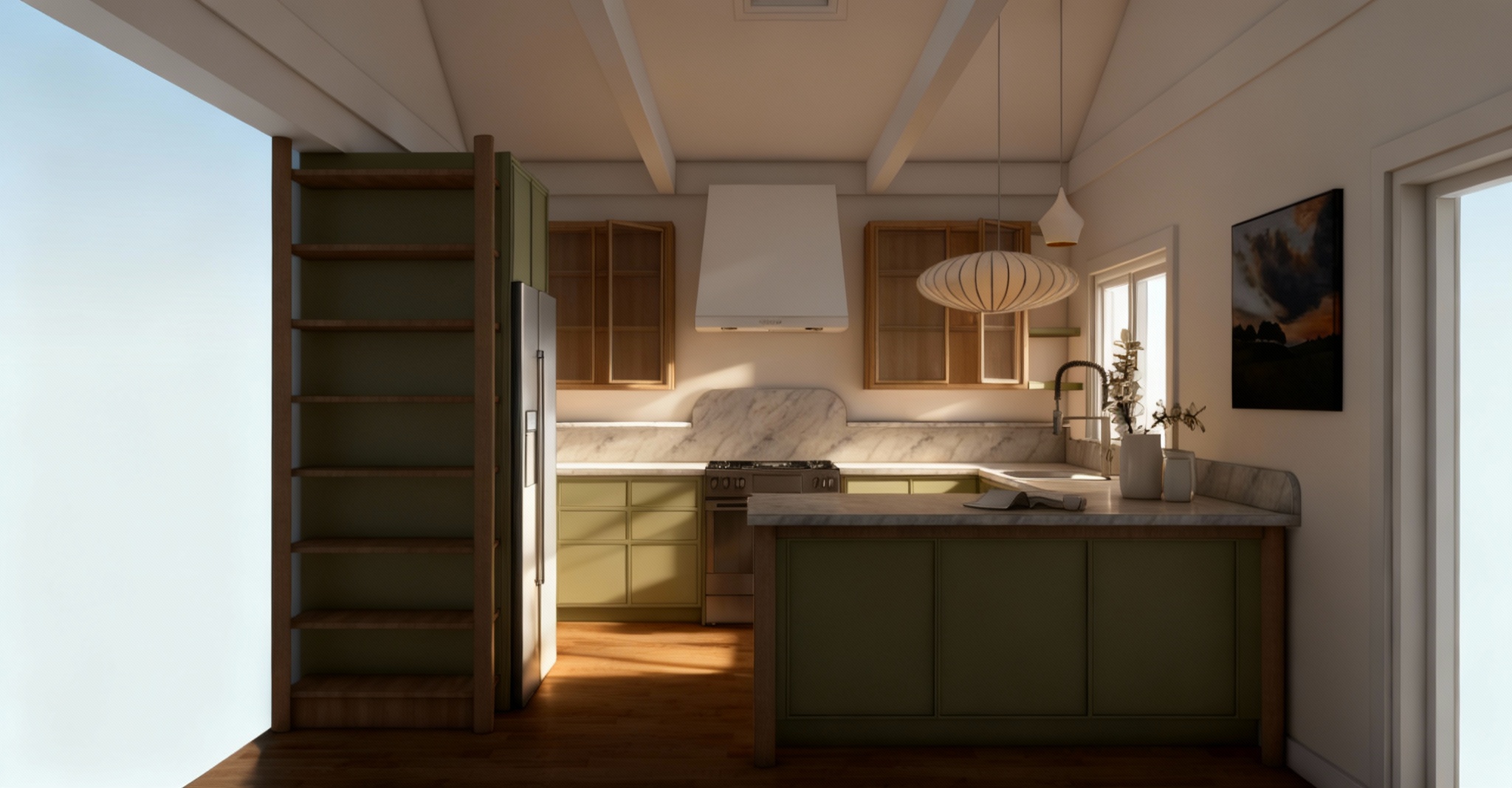 very soft shadows extremely soft contrast keep ceiling white and opening on the left open make eerything much lighter airy and soft light should come from the right side and be soft