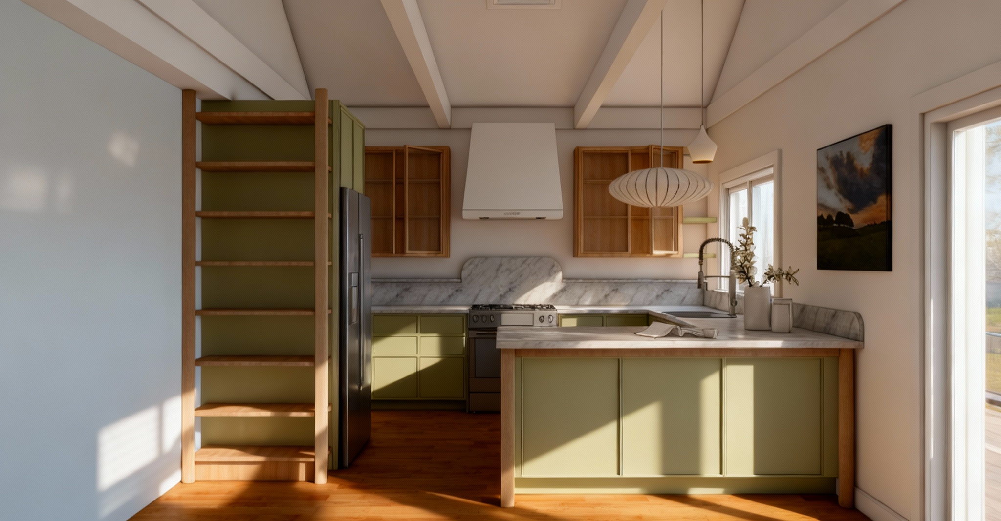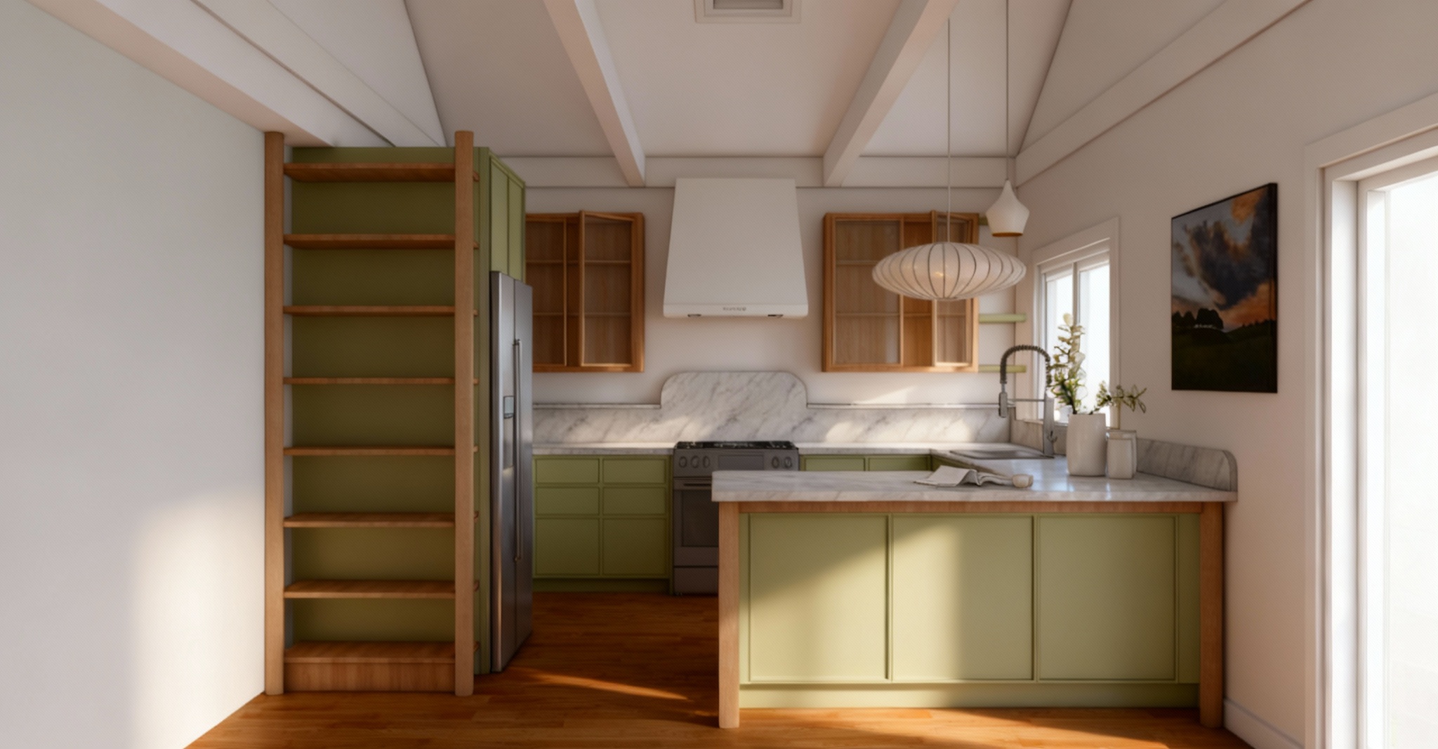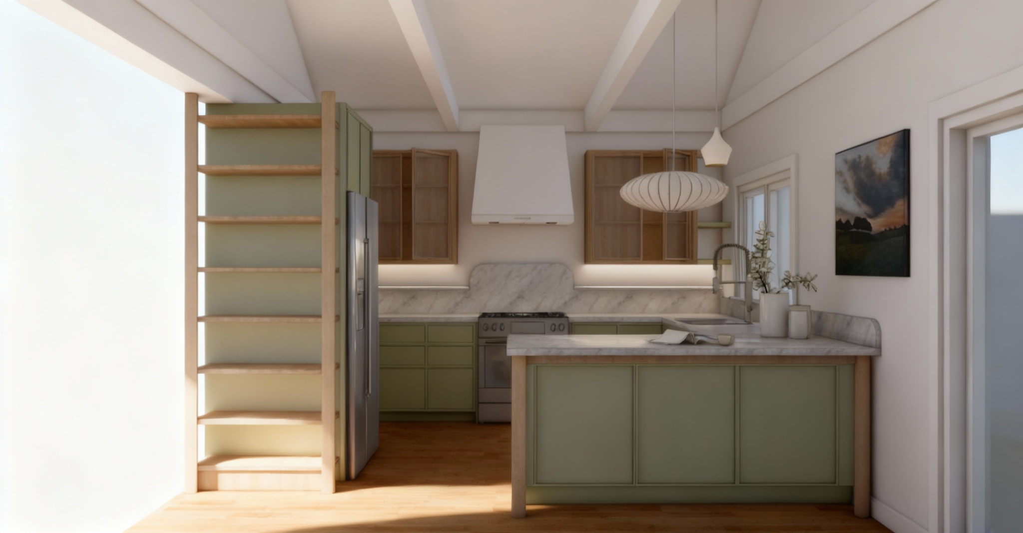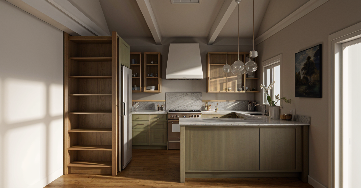 very soft shadows extremely soft contrast keep ceiling white and opening on the left open make eerything much lighter airy and soft light should come from the right side and be soft