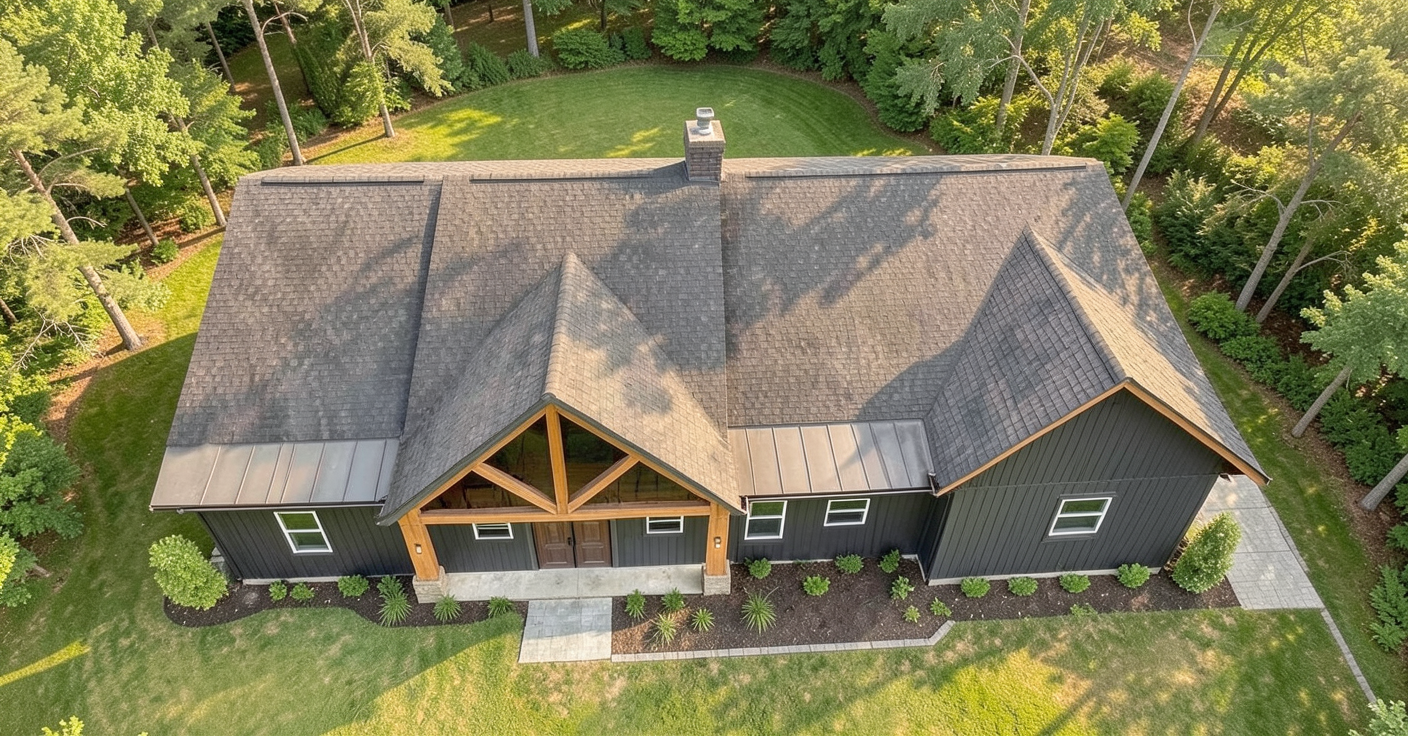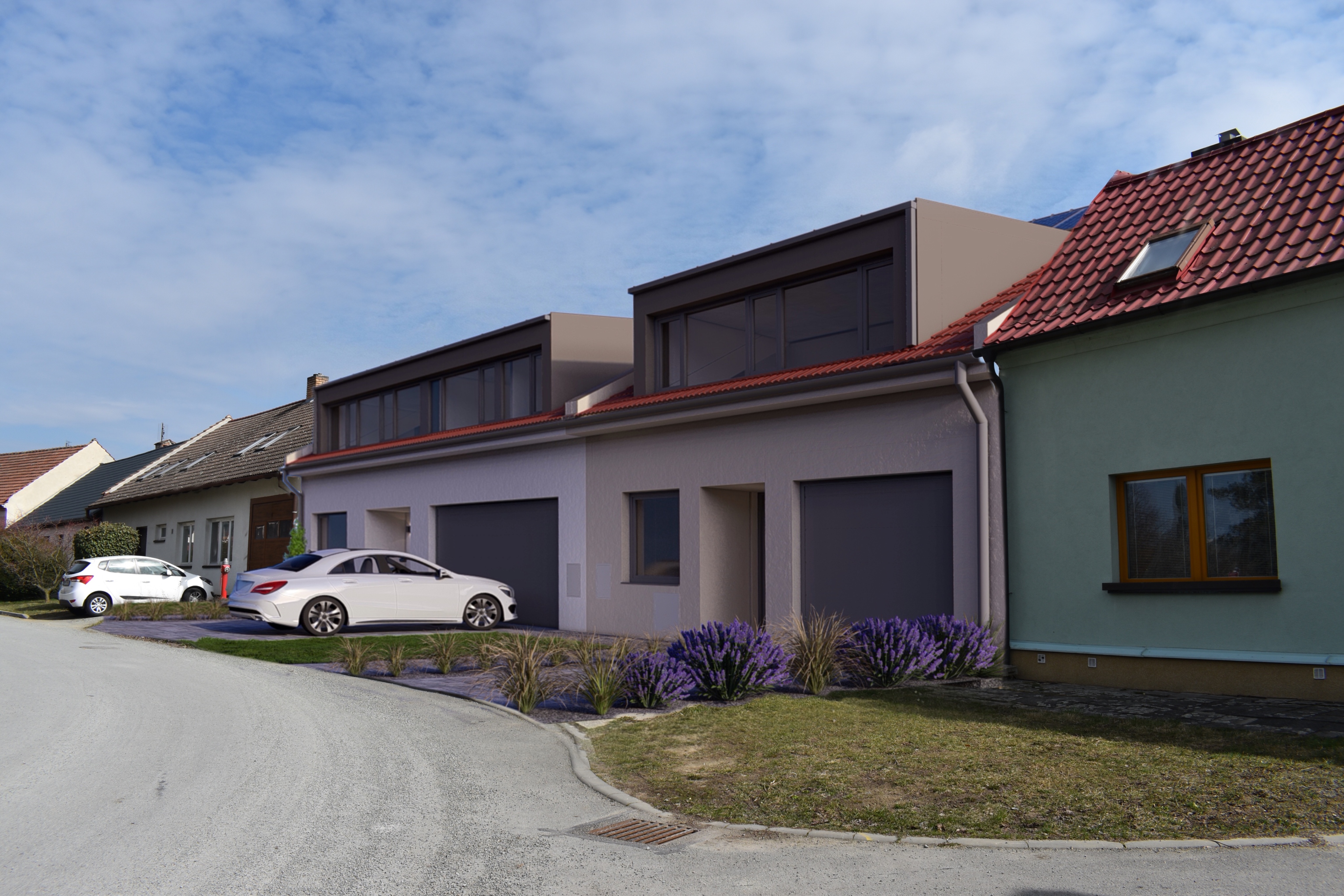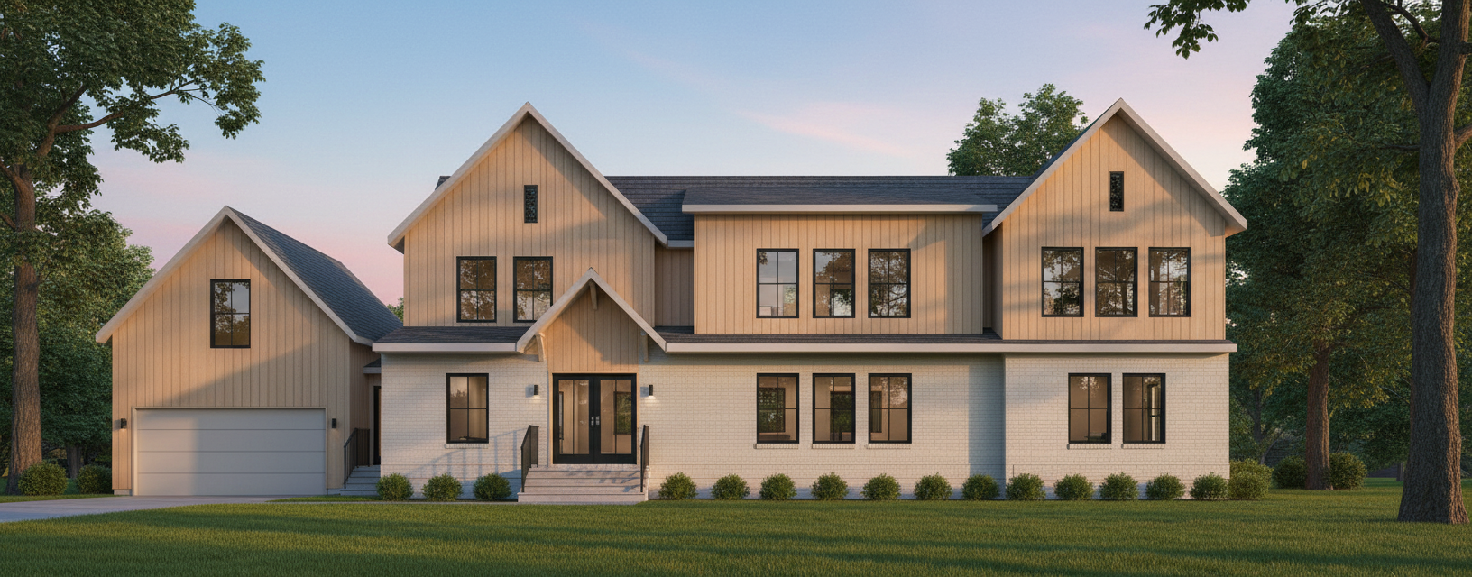 enhance this render where the house in the middle was added balance the shadows and colours while keeping the structure exactly the same