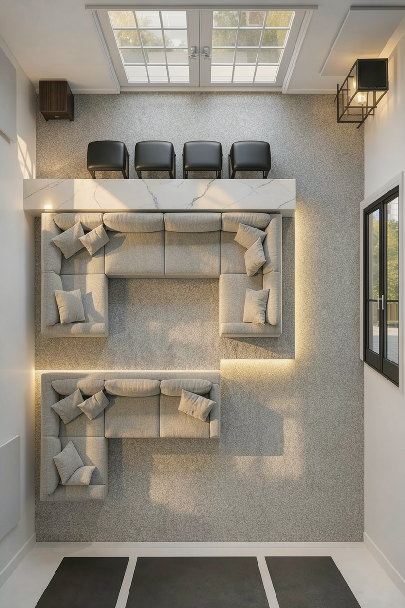 vision realivideo vlastn robot gem vision realivideo k rozum m p ede l v ez se posunul tady je nov ist textov prompt pro archsynth kter explicitn instruuje ai aby nezm nila o ez a pouze dokreslila geometrii sc ny doprava v r mci st vaj c perspektivy ist textov prompt pro archsynth professional highly detailed interior design rendering of an deeply extended attic apartment with a strictly locked and unaltered camera perspective and cropping matching the view in image 10 png the foreground right dining table with the vase of pink and cream roses and wine glasses is perfectly preserved and prominent the archway to the white modern kitchen on the left remains perfectly in place the central gilt textured wall is preserved the tall wooden display cabinet stands in its precise original location the existing light grey sectional sofa on the right is retained the solid wall partition previously at the far back end of the room is completely removed revealing an extended attic depth the wooden plank flooring and white walls continue seamlessly deep into the newly opened space under the expanded array of skylights directly to the right of the existing tall wooden display cabinet a low profile multi tiered modern wooden tv console with a large flat screen television is added creating a comprehensive media wall a collection of vintage cameras is now clearly displayed on the shelves of the vitrine further deep within the newly opened space against the new back wall and positioned to face the media wall and vitrine a second large modern l shaped light grey fabric sectional sofa is placed featuring a textured decorative throw blanket and a few specific patterned decorative pillows all previous logos and text are removed