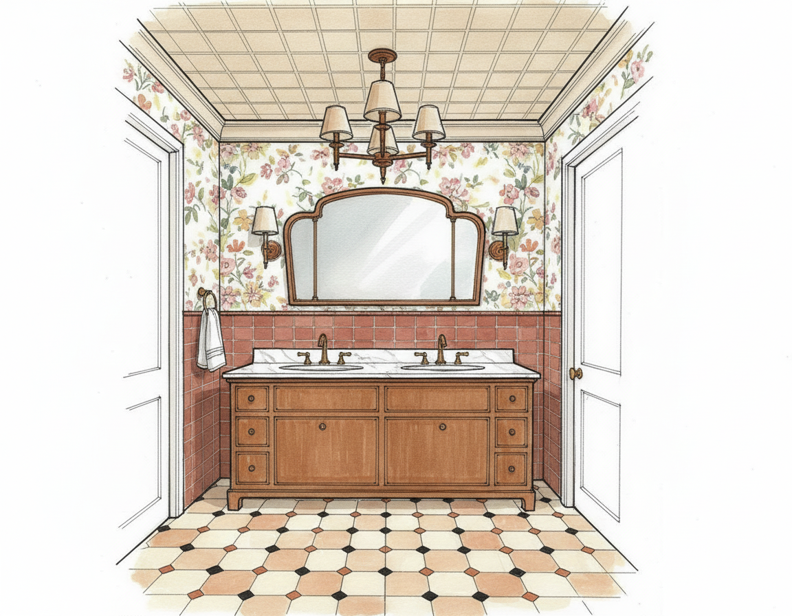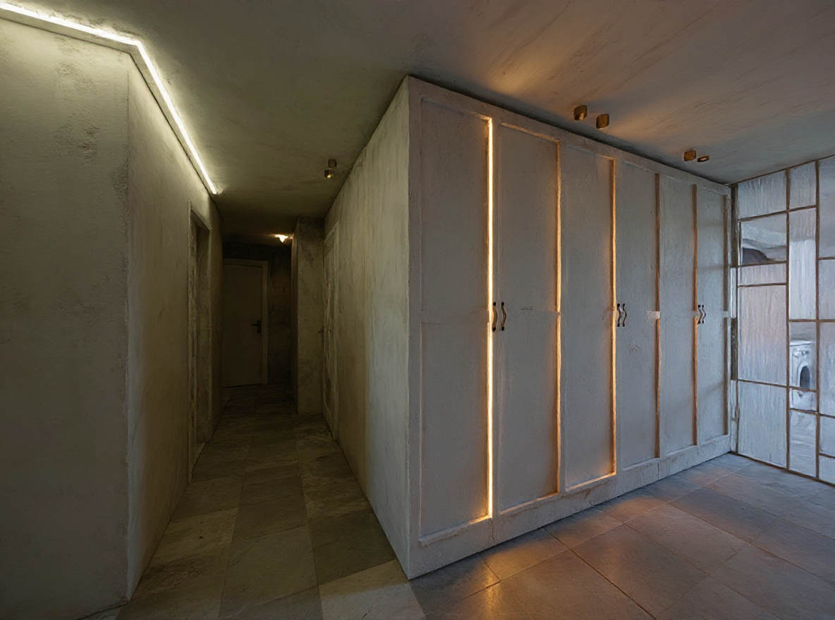 create a realistic render of the space retaining all existing materials colors and finishes exactly as displayed provide a neutral white lighting setup that evenly illuminates the space ensuring all existing light fixtures emit realistic illumination maintain the overall ambiance and material authenticity while enhancing visibility through balanced natural lighting