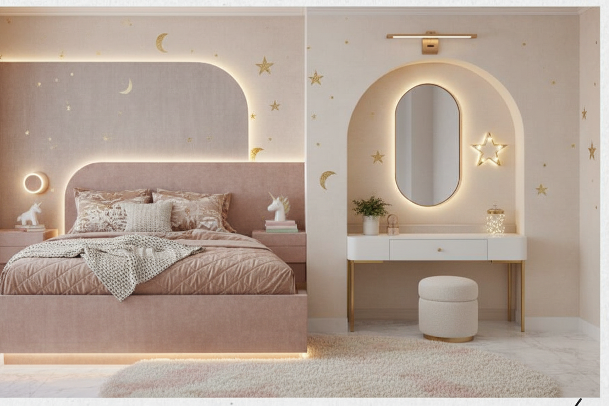 quitar toda la decoracion doradas las estrellas lunas y en la zona de la mesa hacer un armario zapatero