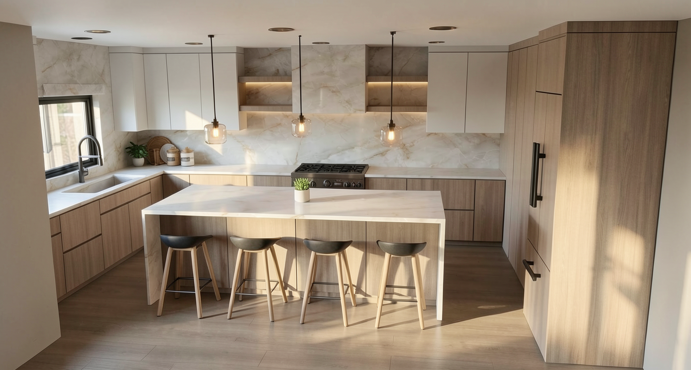 render a serene country dwelling set against a clear blue sky the house should have a warm beige exterior with white trims and the roof in a soft gray shade the surrounding landscape is lush and green depicting well maintained grass highlight the driveway in a light gray stone color emphasize the front porch with elegant pillars in white reflecting subtle late afternoon sunlight for a peaceful ambiance add a distant basketball hoop blending naturally with the setting and ensure the atmosphere is calm and inviting ensure the sheds in the background appear well maintained