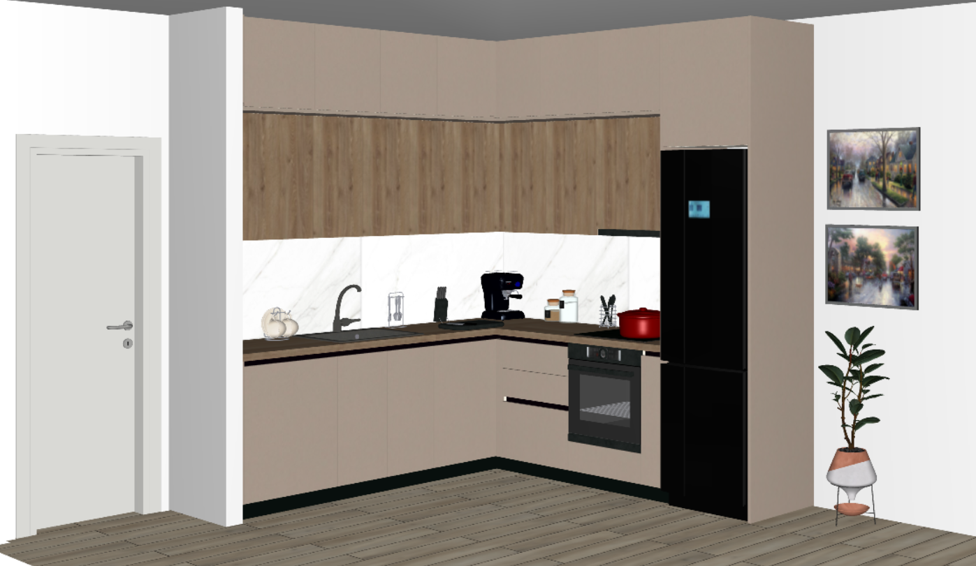 just 3d render darker wood on the doors black sink