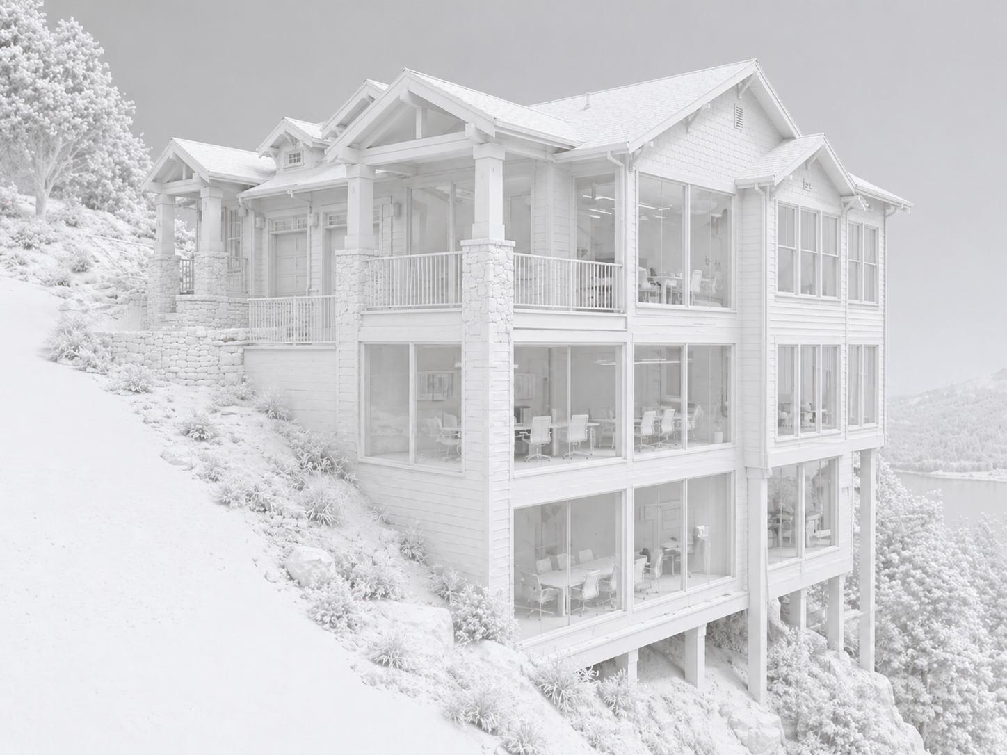 a building on a steep site with large extent of windows in classical hotel style