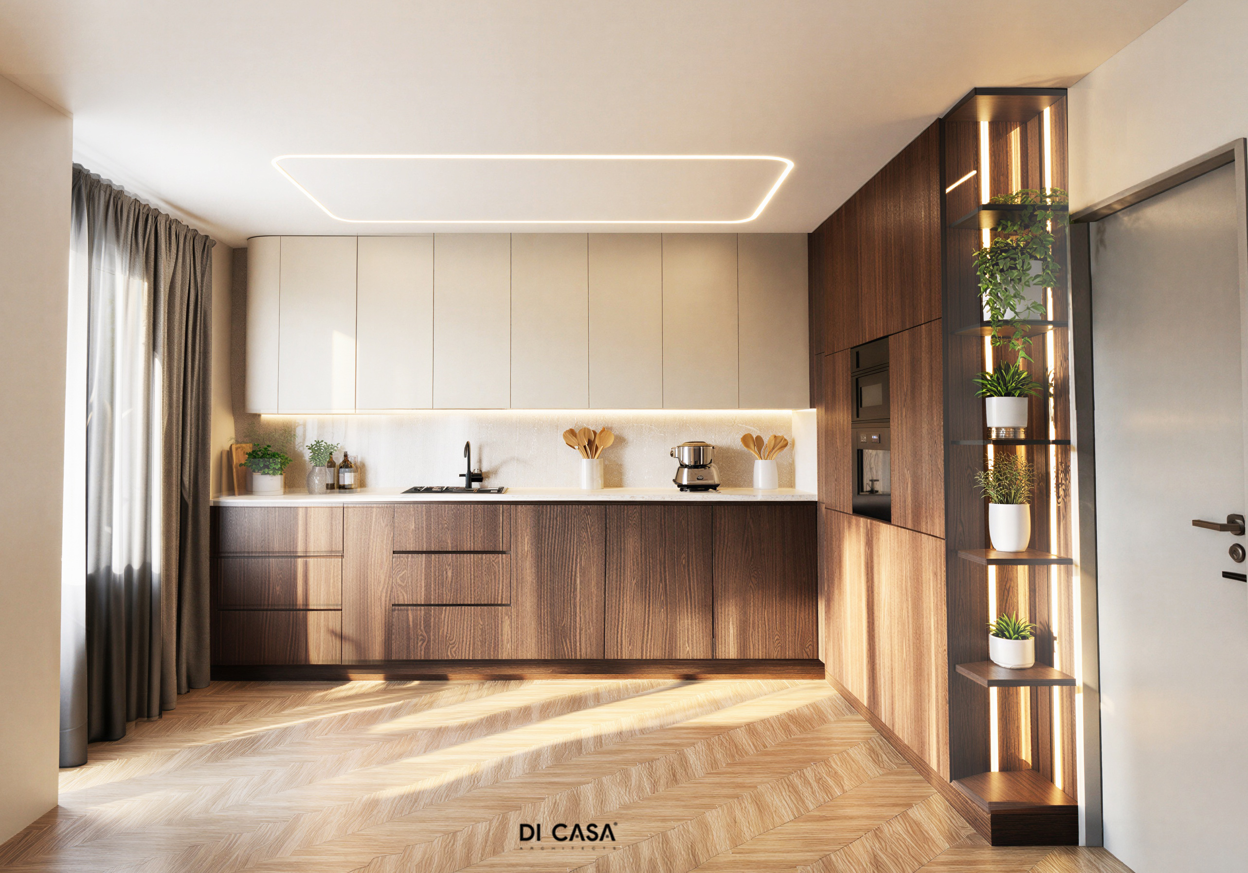 add a red smeg coffee machine on the kitchen counter top on the left side