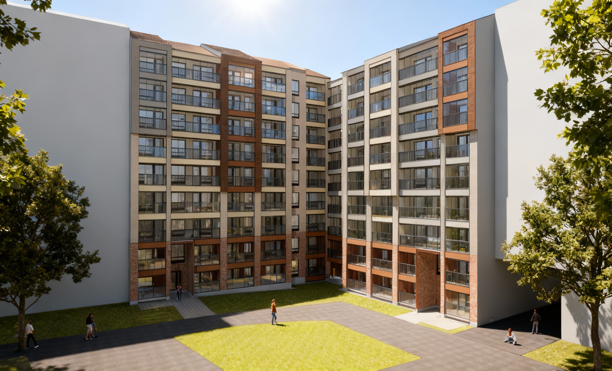 black frames and mullions lots of light glasses reflecting brown roof tiles