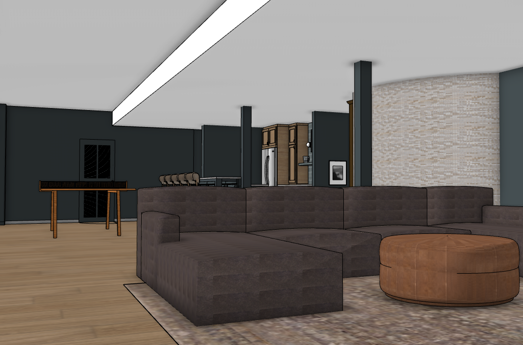 create a photorealistic rendering from the 3d model do not change colors scale or details in the image add accent lighting to the fixtures represented