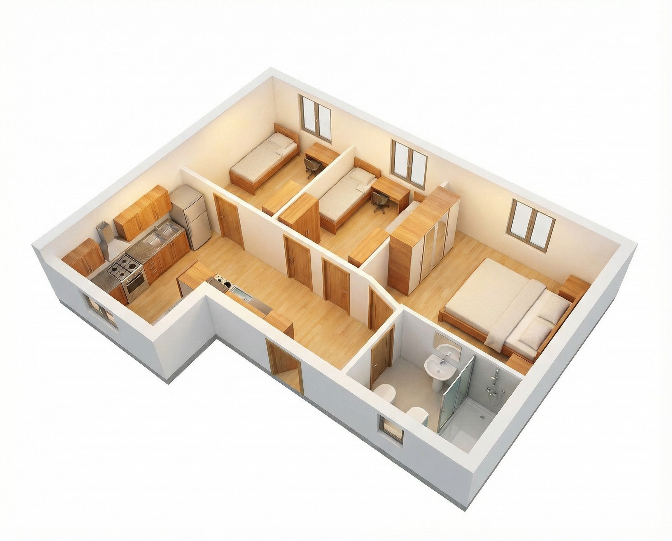 enhance this image to hyper photorealistic quality preserve the exact geometry proportions layout materials colors textures and all design details exactly as shown do not add remove redesign restyle or reinterpret anything do not change materials colors lighting direction furniture dimensions or composition no new objects no decorative additions no artistic reinterpretation only improve realistic lighting natural shadows material realism true to life surface rendering reflections depth and camera realism high end architectural photography quality the final image must be a 1 1 faithful photorealistic version of the original design