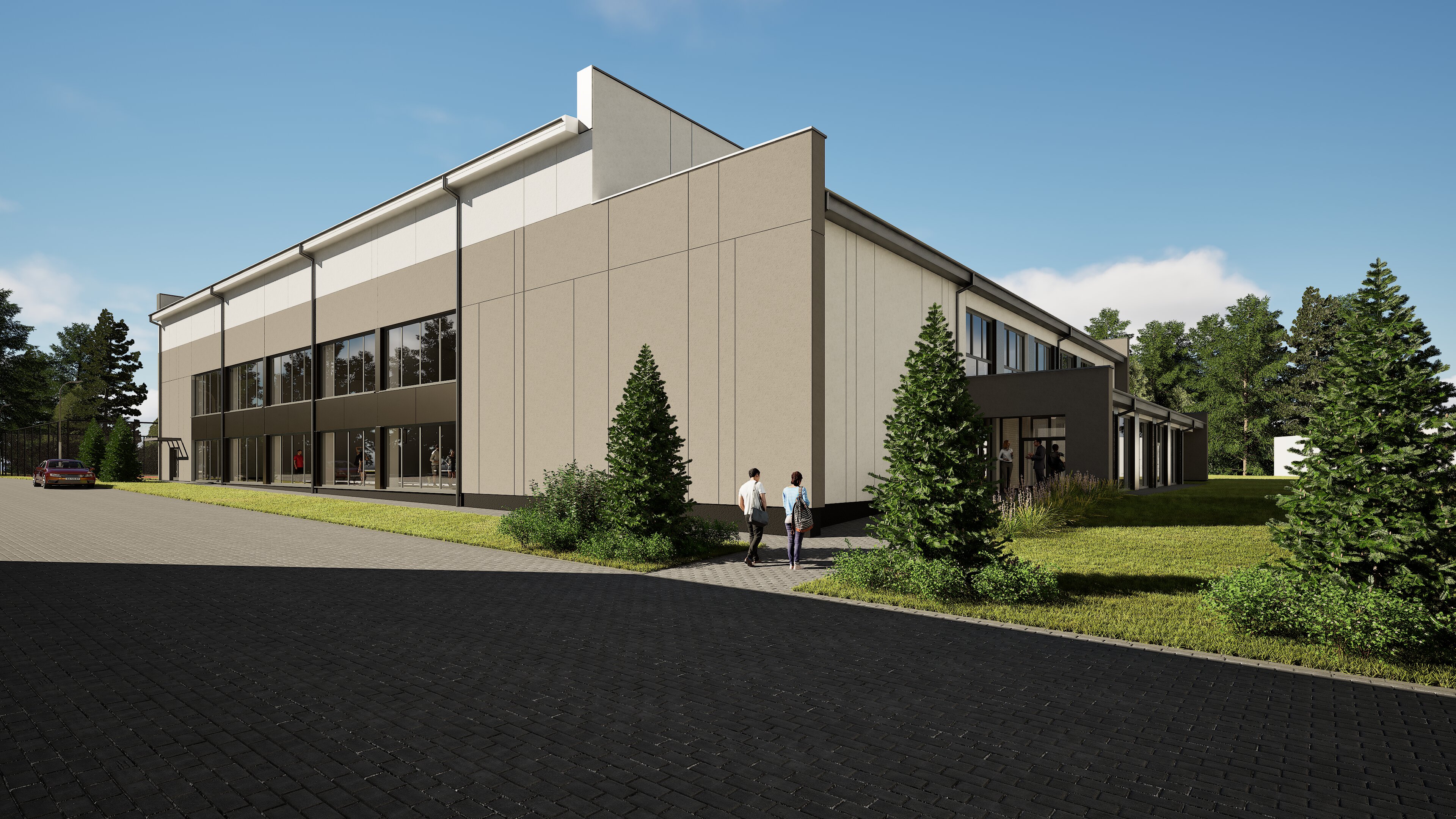 fotorealistyczny widok odbicia w oknach po lewej stronie za okanmi wida mecz siatk wki w sali gimnastycznej jasne wn trza wysoka jako naturalna ziele