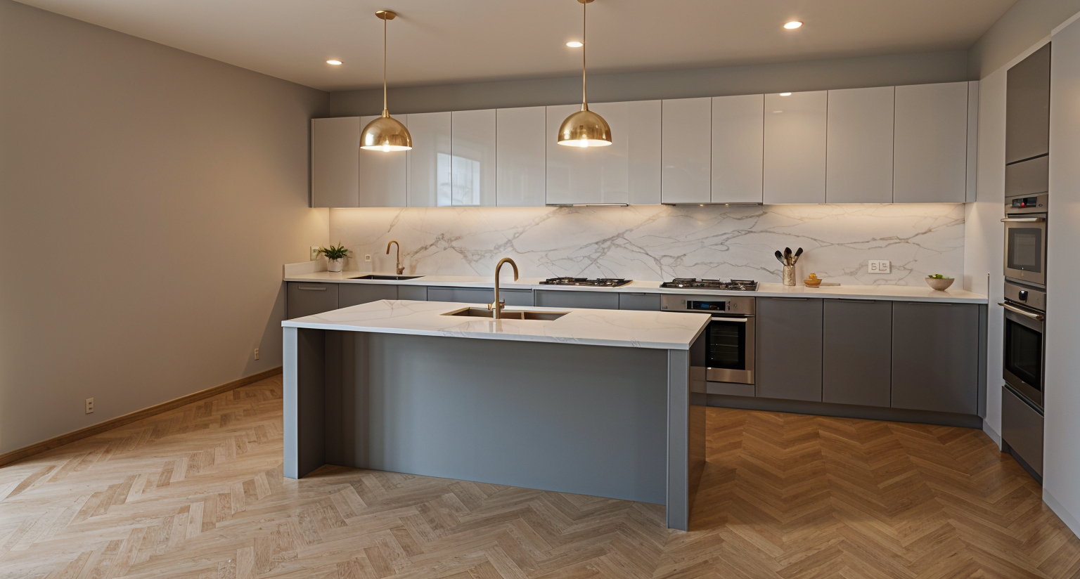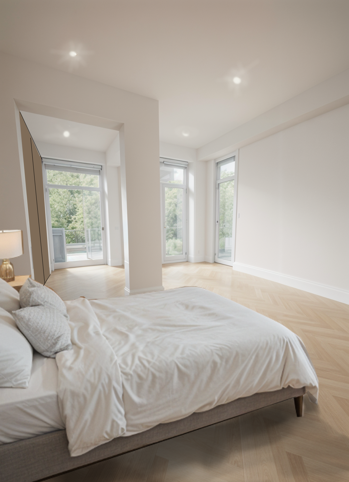 mantain same shapes and colors add plants in pots add a desk and chair on the front of the middle window add a modern free stand bathtub on the right side