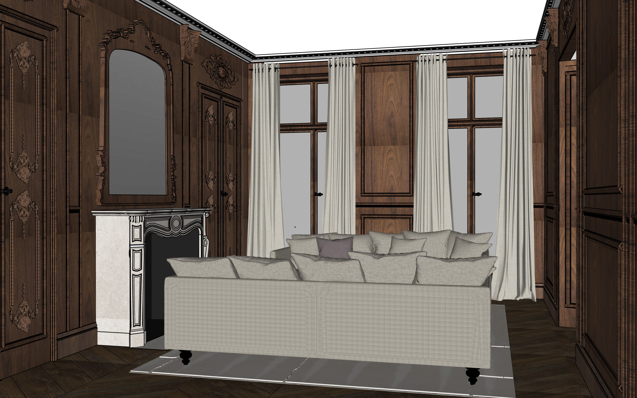 the apartment is located in a parisian building on the 3rd floor the wood of the millwork of the walls is walnut the sofa is this one and should be in taupe velvet https www laredoute fr ppdp prod 500807014 aspx dim1 1004 dim2 1000 docid 00000000000001 cod bps00081461fr gad source 1 gad campaignid 23078571328 gbraid 0aaaaadykrsq2wb cqzmtrejqq qowwd37 gclid cjwkcajwwjzpbhbreiwajfhrnefmhkxyjvvsckfhdmpm56lxbpyvmmymwweesn2su2teqz5ql18krrocgfcqavd bwe