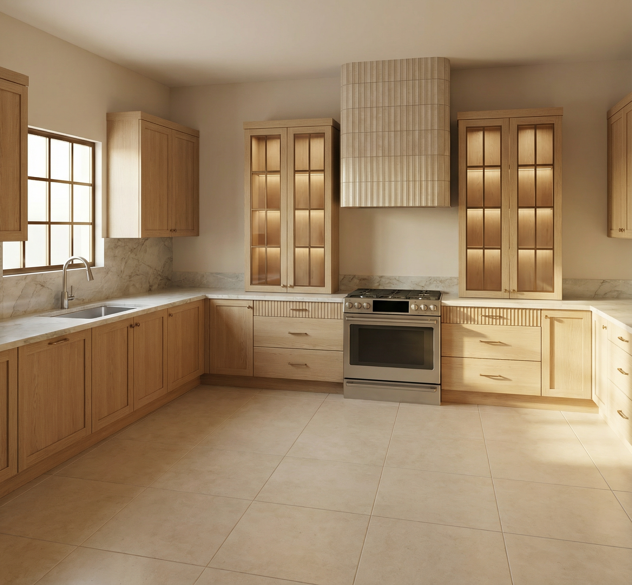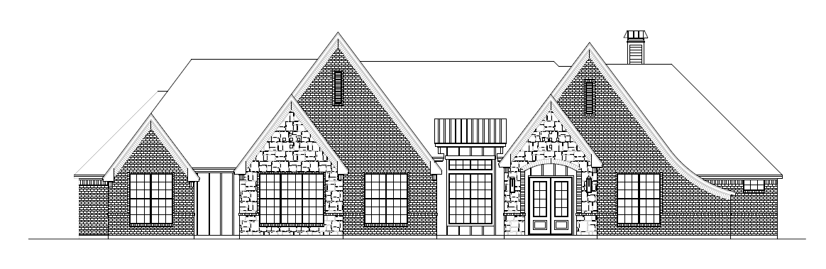 render a picturesque charming single story house with a classic brick facade use warm red bricks for the walls complemented by rustic gray stones around the windows and entrance to create a welcoming contrast finish the roof with soft slate gray shingles set the scene in a bright sunny afternoon with a clear blue sky and gentle sunlight casting soft shadows incorporate lush green landscaping with vibrant flowers in the foreground for a serene cozy atmosphere