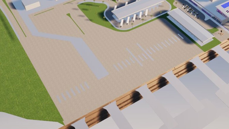 concrete pier area with white lines notating the different car lanes without any cars on the pier zanzibar lighting