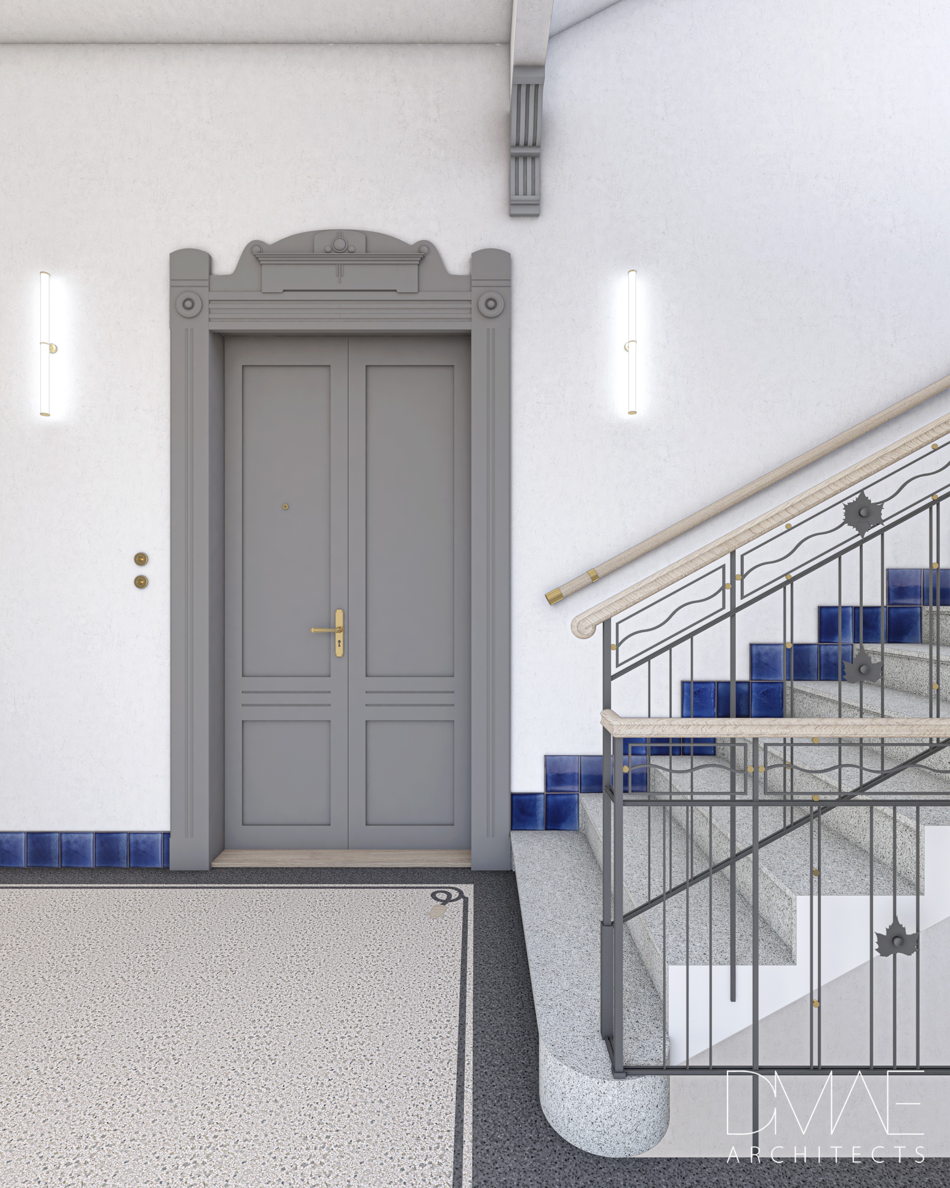 photorealistic interior visualization soft light semi matt gray color