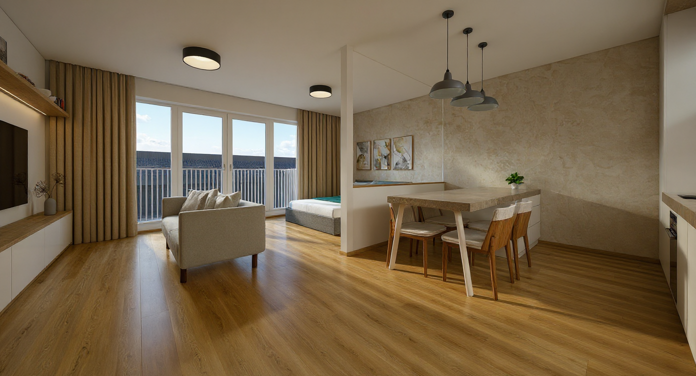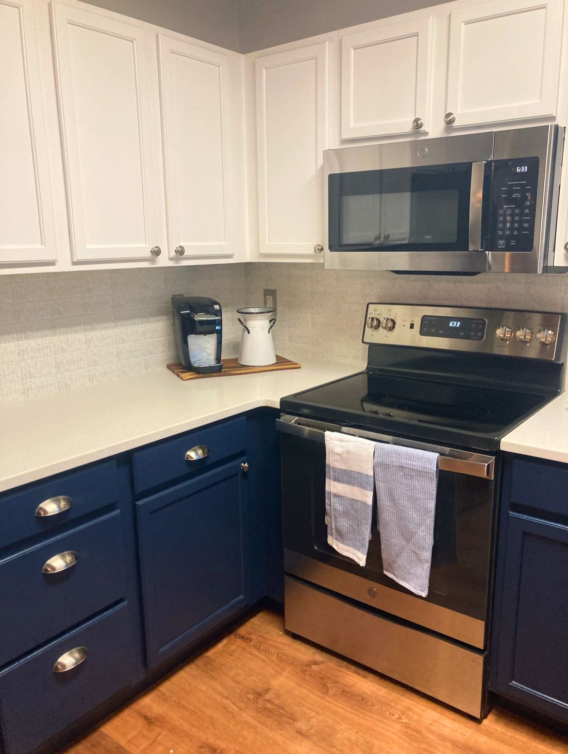 create another view of this kitchen so that we get a full range view of this open concept kitchcen keep the color palette and accessories just extend the view to see the full larger view of this exact kitchen match all the colors and appliances to be cohesive with the image create a full kitchen based off of this image add a farmhouse sink