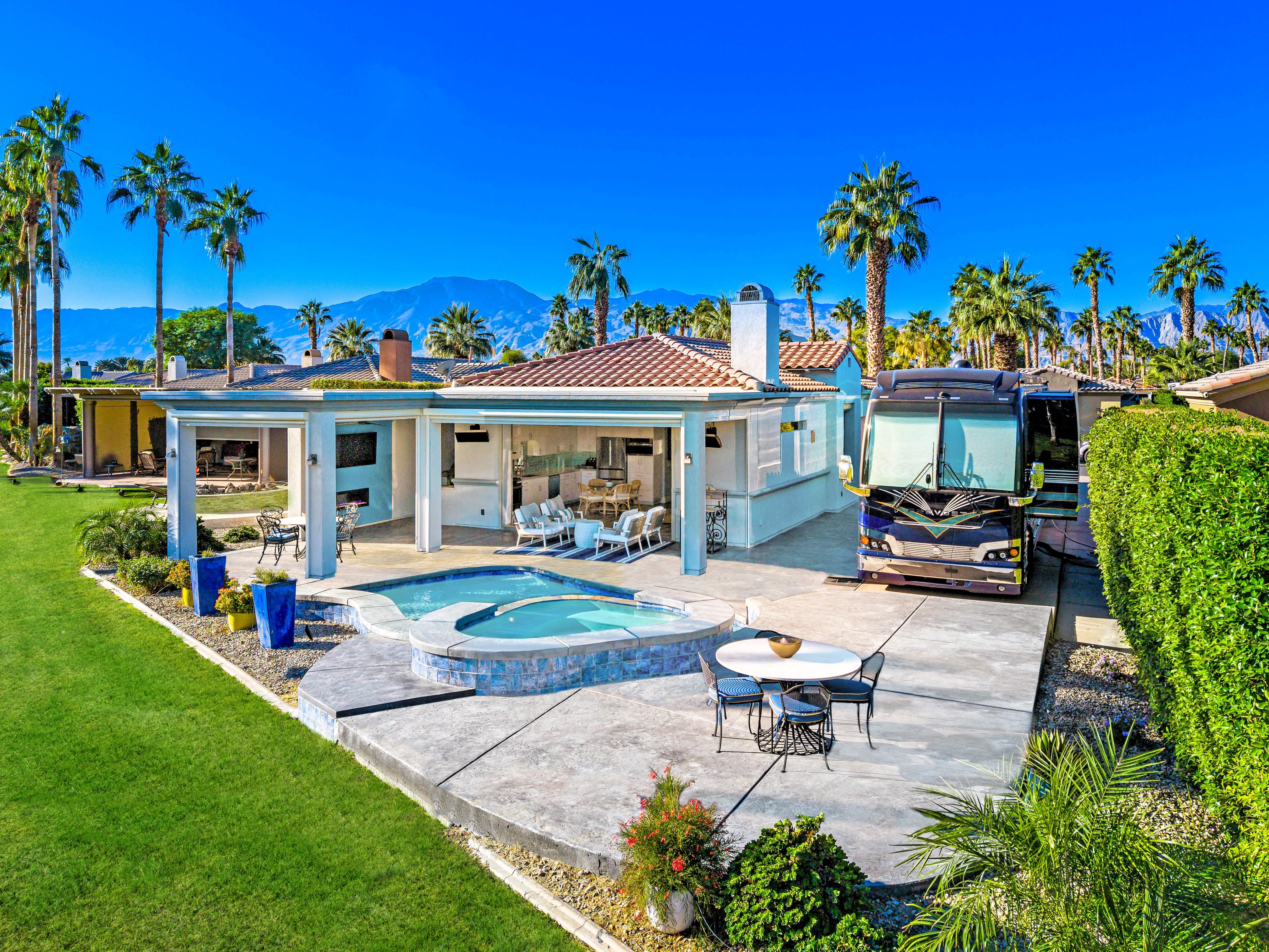 contemporary exterior shot on the right side of image is newell luxury motorhome architecture