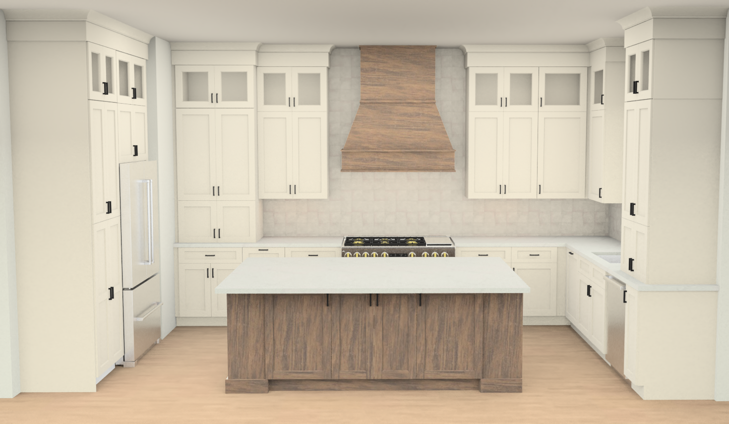 use walnut wood for the island and hood