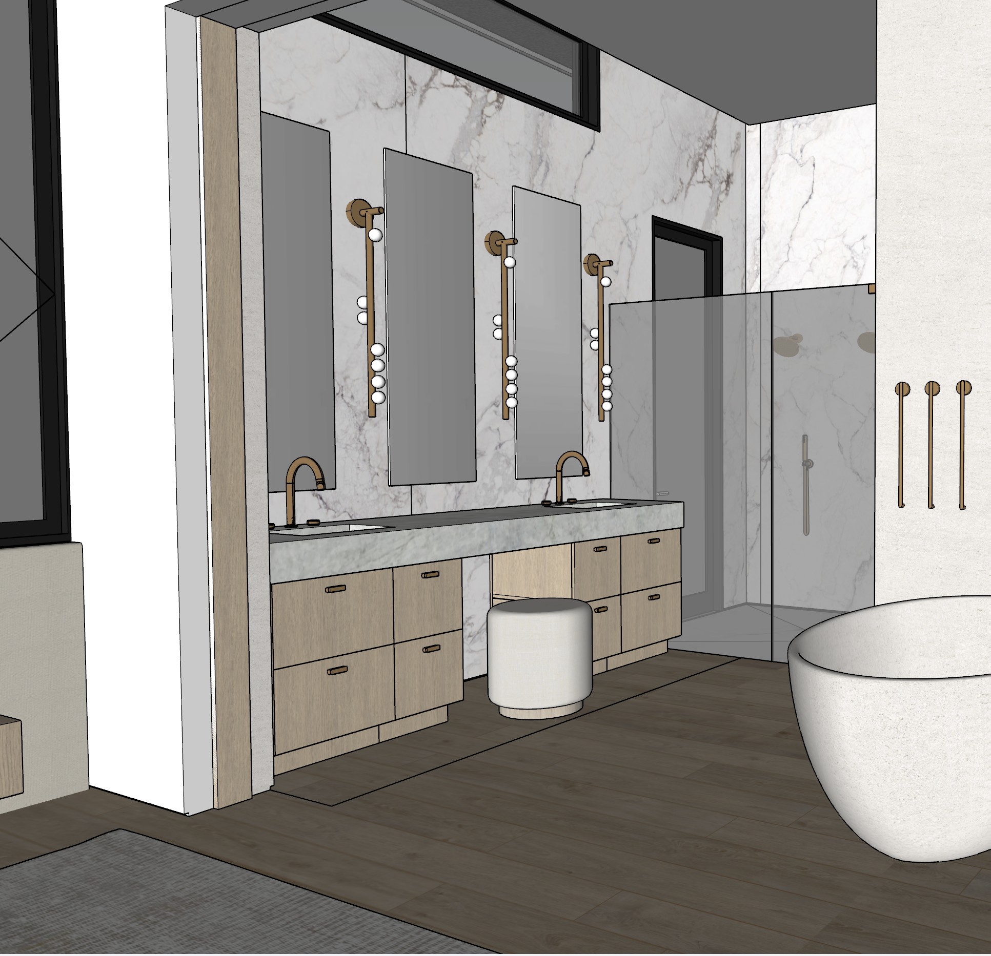 do not change any geometry do not add any objects create a realistic photo render add soft lighting and led strip lighting at ceiling an under cabinets