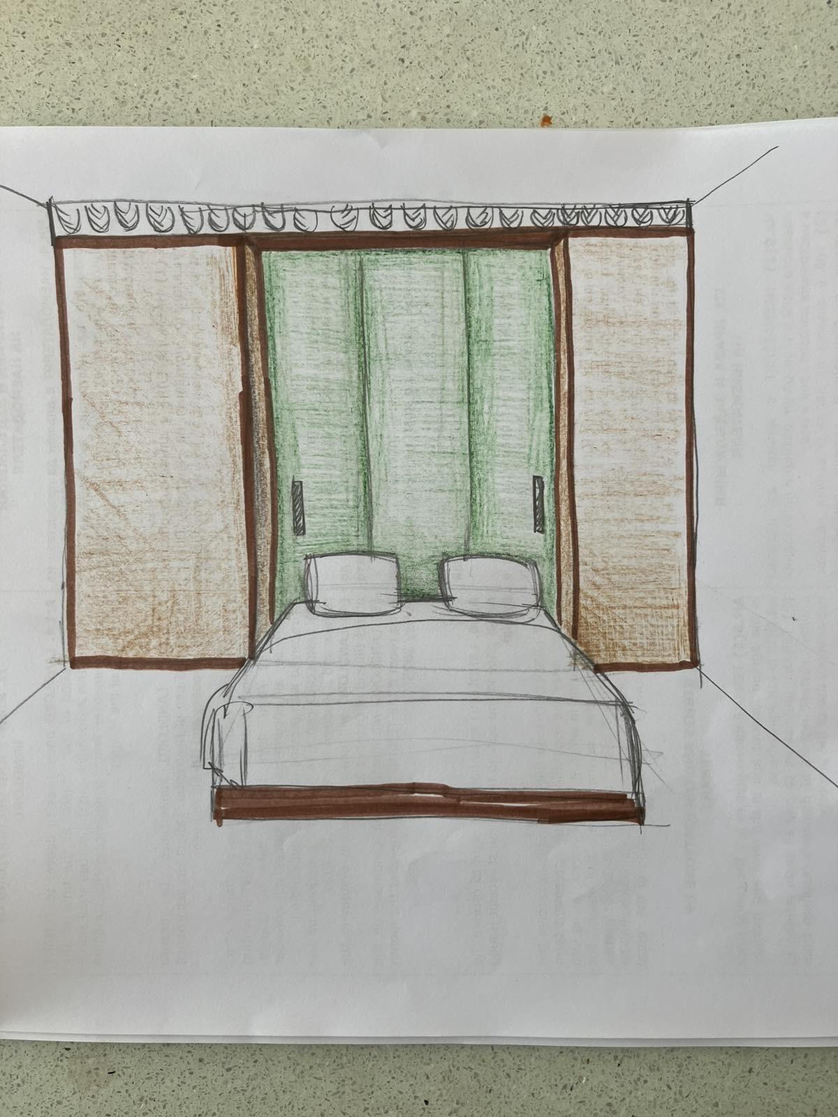 exterior shot bedroom with upholstered headboard and wardrobe frame wall lamps decorative cornice