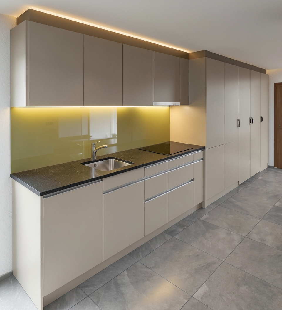 lighting refinement only on the uploaded image strict color material lock do not change colors tones saturation materials textures or furniture in any way all cabinet fronts wood surfaces countertops and floors must remain pixel identical to the input image improve lighting realism only natural daylight balance realistic soft shadows correct global illumination subtle reflections balanced contrast and exposure no realism enhancement beyond lighting no style change no redesign interior photography lighting neutral white balance high end real estate photo look add only a few subtle realistic accessories if appropriate a small ceramic bowl a minimal plant a wooden cutting board no color grading no white balance shift on furniture no material enhancement no texture enhancement no warmth or coolness changes no style transfer no object addition no design modification