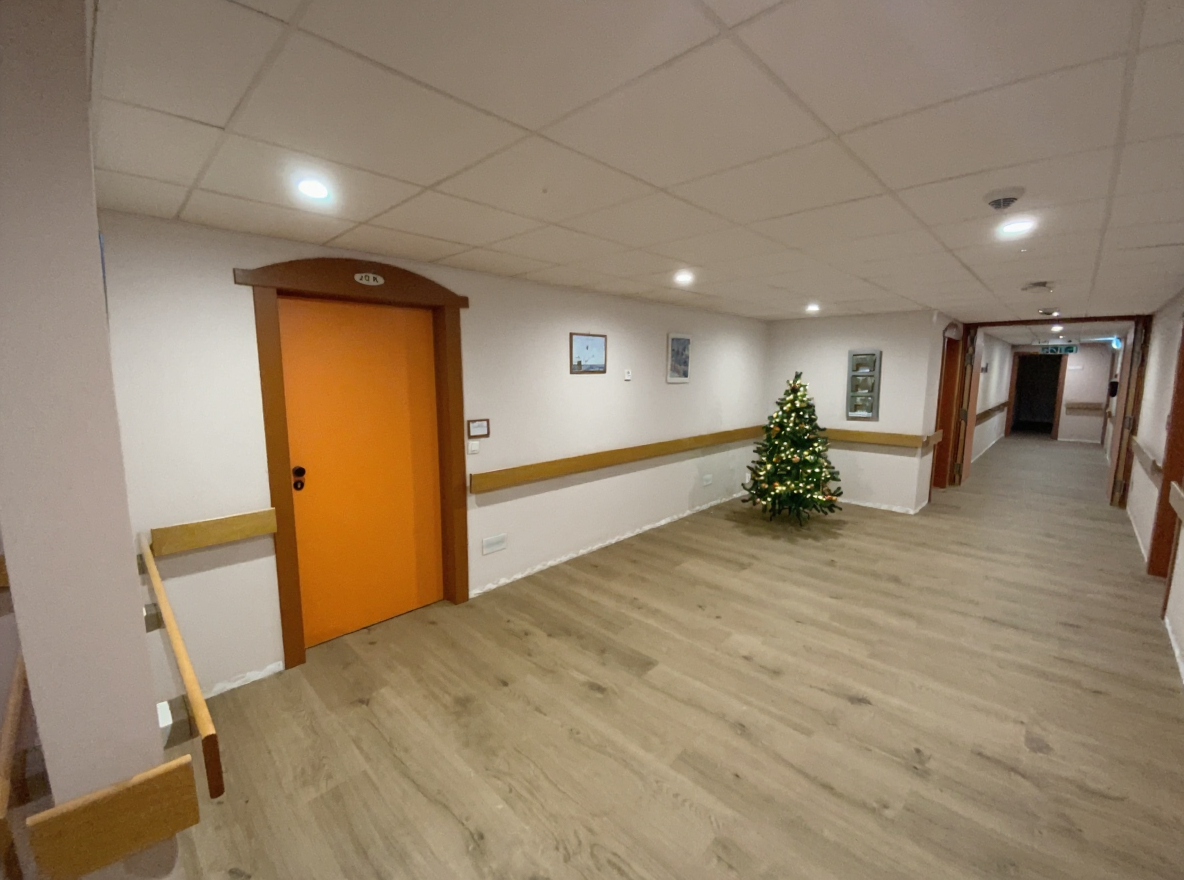only apply the following change the wall handrails are wrapped with 3m dinoc architectural vinyl reference dw 2207mt the finish is a neutral grey brown wood tone with a muted desaturated appearance it has a fine linear wood grain a matte finish and a realistic architectural vinyl texture the color is balanced and calm not warm not orange not red clearly grey brown the handrails remain identical in size position and detailing no other elements may be changed no warm wood tones no orange or honey colors no reddish brown no glossy or lacquered finish no changes to walls floor doors or ceiling no redesign no reinterpretation no lighting or camera changes match the appearance of 3m dinoc dw 2207mt as closely as possible do not invent or stylize the material