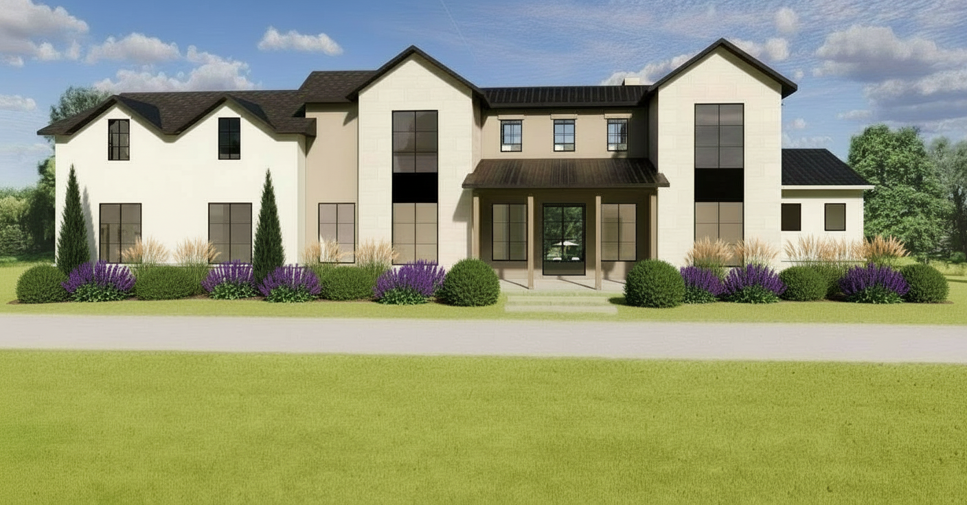 keep the first tree only take off the other tree and reduce the amount of plants and bushes and do not change the house or anything else only keep the first pencil tree
