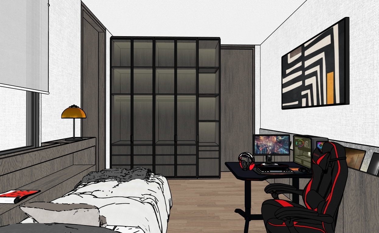 render with natural lighting wardobe laminate in greyish wood grain