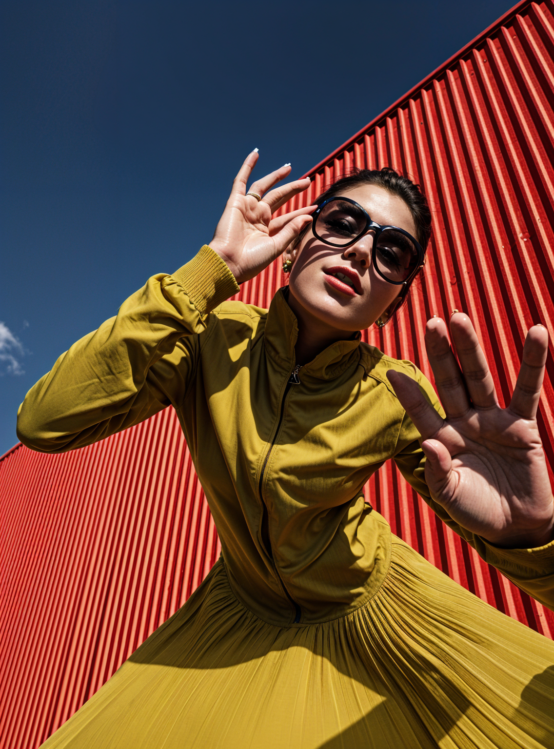 make the vertical background yellow and a red outfit