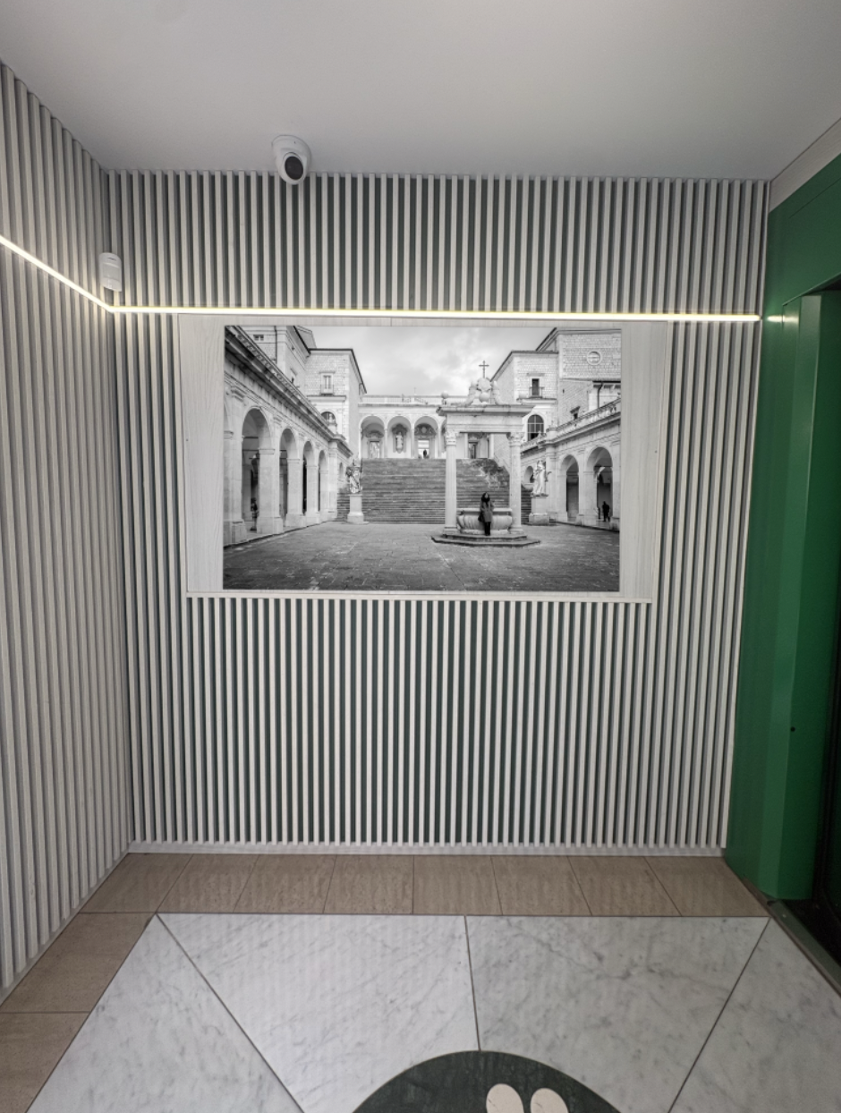 frame the photo leave it in black and white in a plexiglass panel using 4 small and minimal spacers