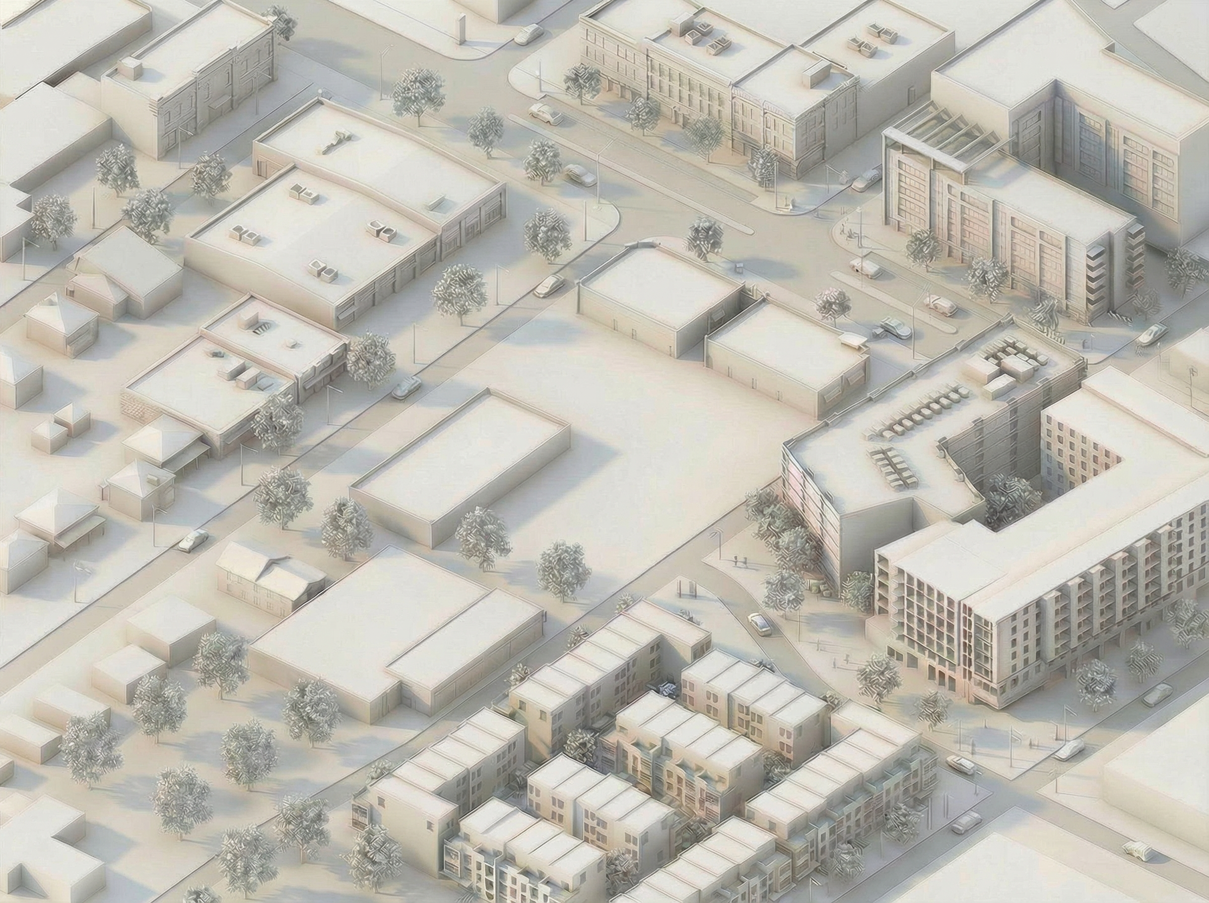 render the building in this image with soft texture the roof is a grey metal panel roof the walls are textured white render the image so it architectural dimension overlay make it look like a technical sketch please no measurment tags anywhere the slip for the roof in front slopes forward and the slope for the semi cricle slops down as well make some cement stairs to sit in the circle