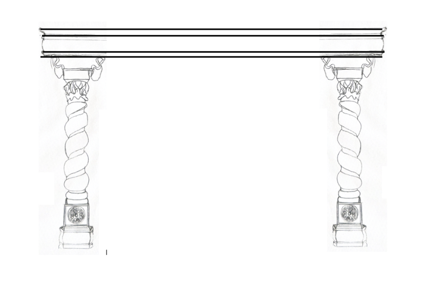 show a 3 4 view of this mantel and pilars retain the cad style rendering in black and white