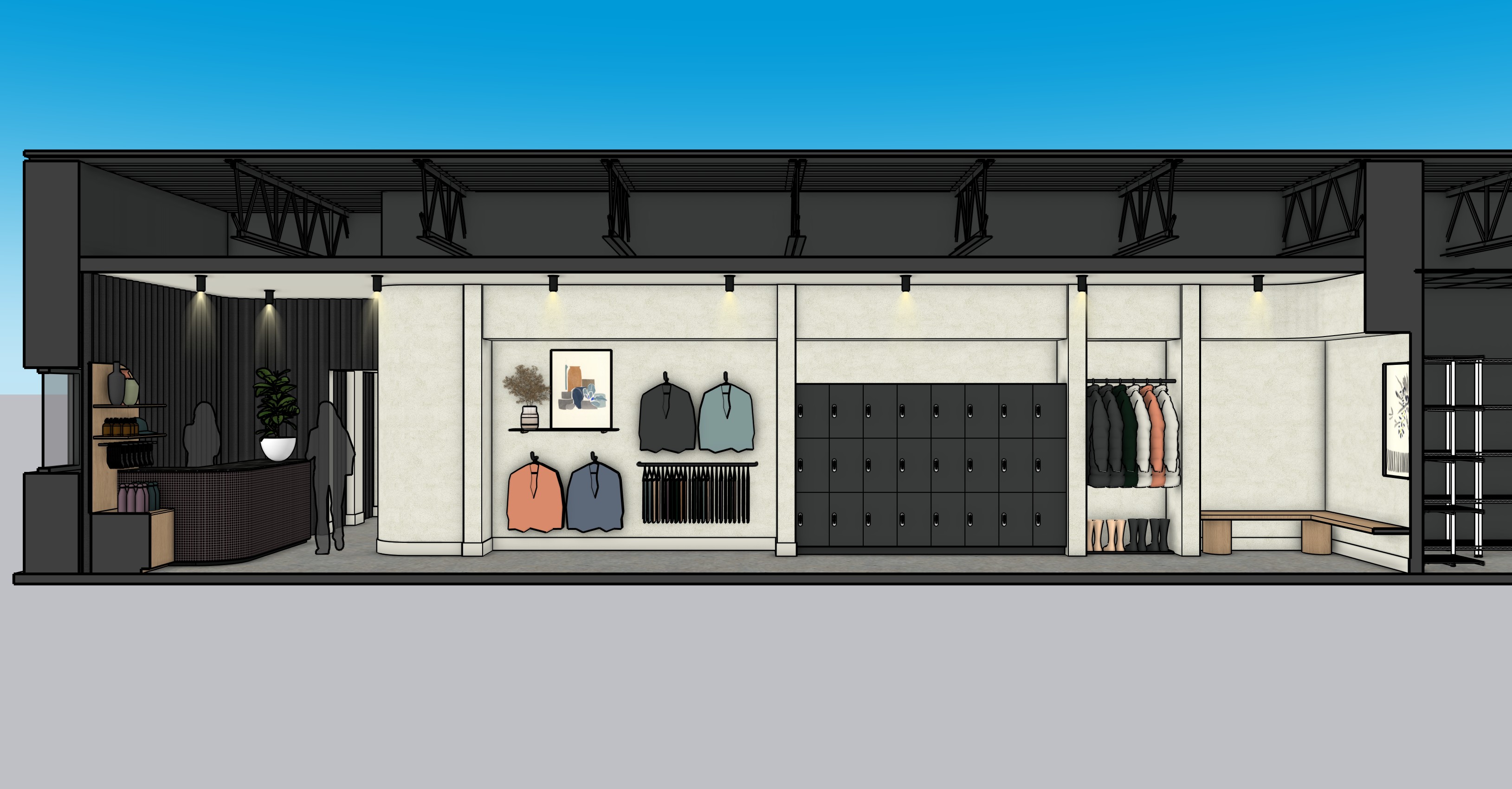 interior section rendering neutral background no sidewalk no sky no grass