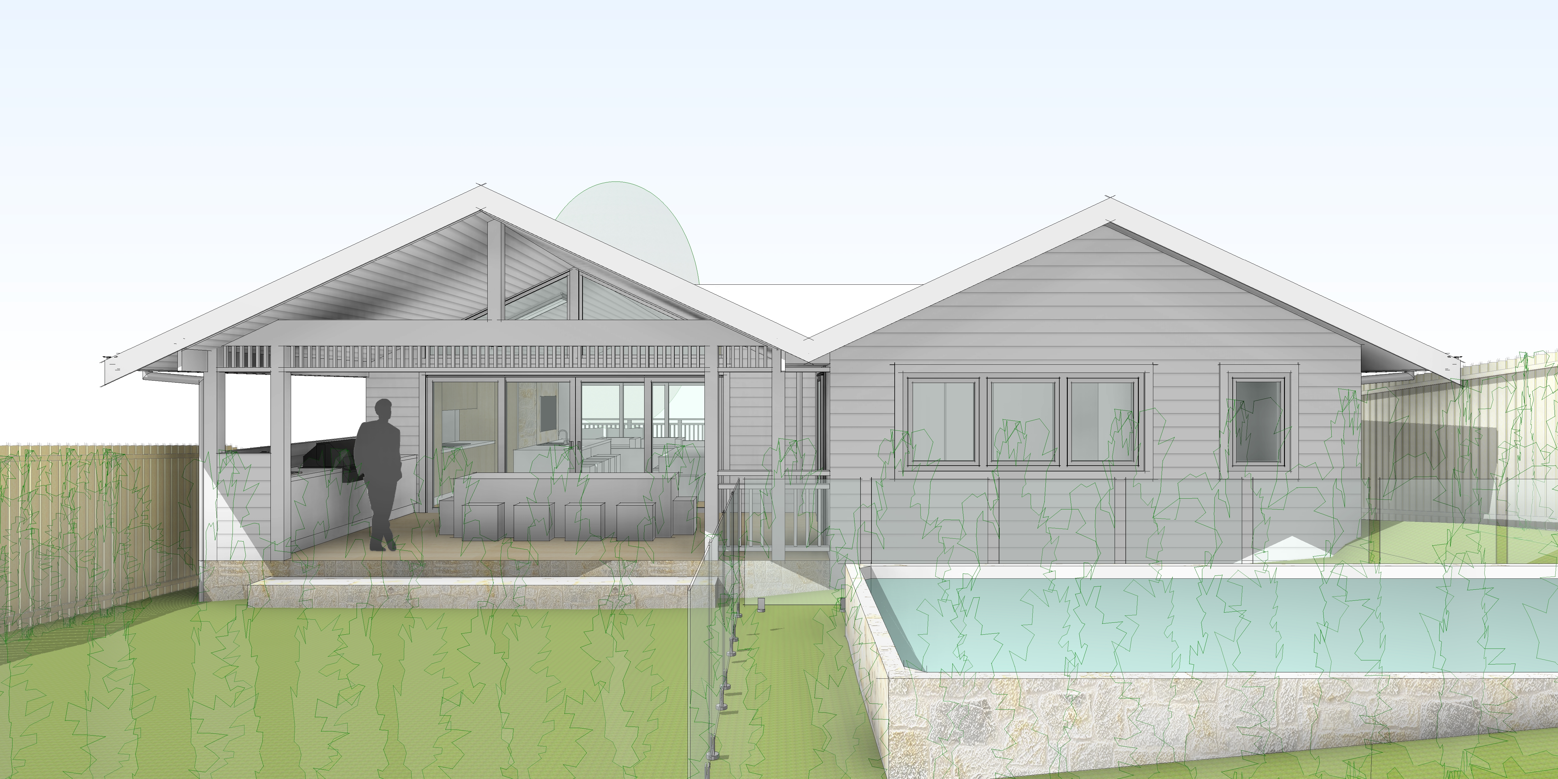 render a photorealistic 3d perspective of this house in sydney reference the current material style just enhance them white standing seam metal roof horizontal wood siding concrete walls keep model geometry the same windows doors roof walls garage door pavement driveway make a lush vegetation that looks native to australia do not change the view only enhance the current materials and make the landscape nicer vegetation detailed textures in the siding and glass reflections and a vibrant clear sky with light atmospheric depth render in hyper realistic architectural visualization quality 8k resolution