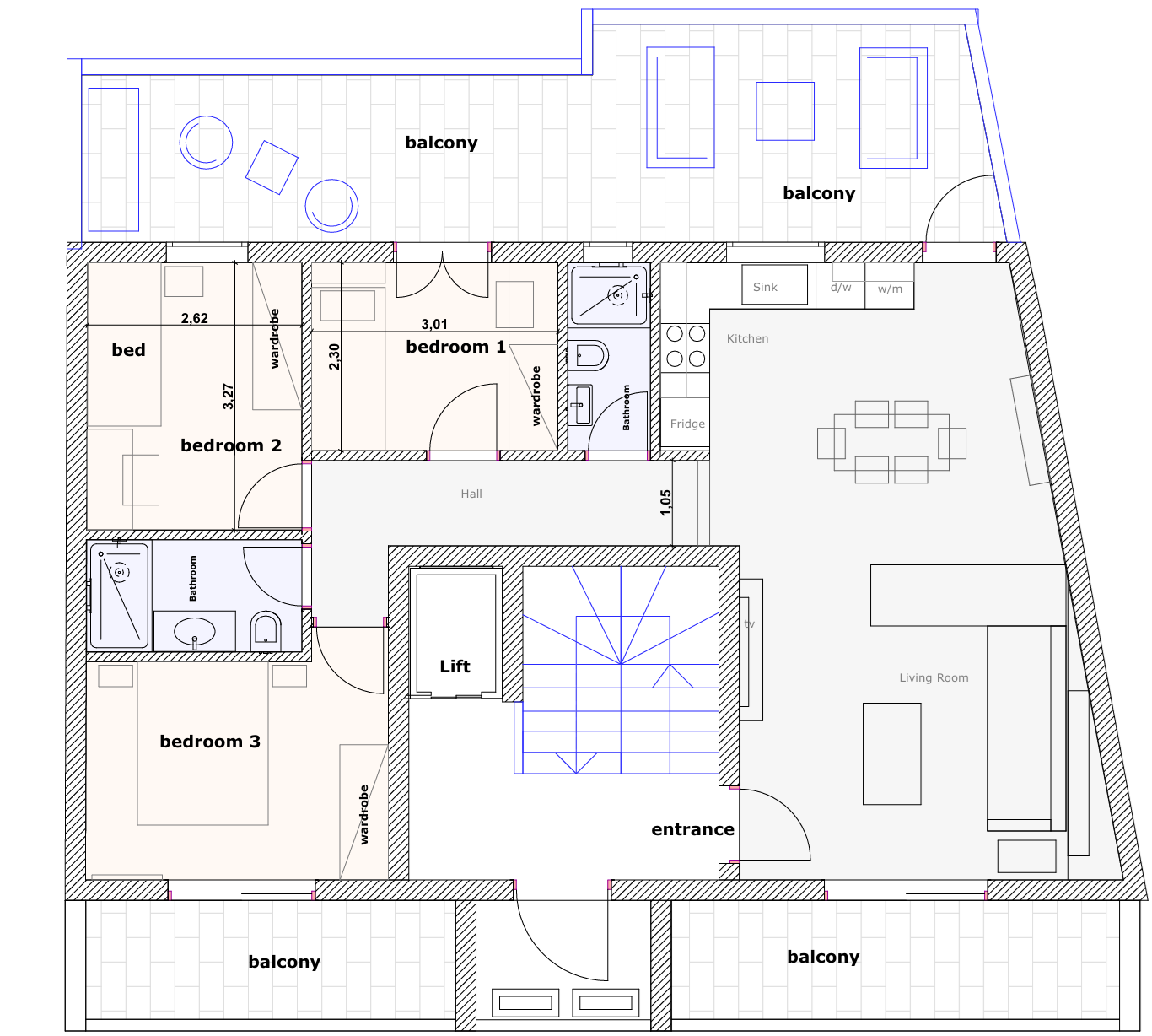 convert this floor plan into a realistic isometric 3d view of a full house show the space from an elevated angle with furniture walls and details visible beige minimal colours with wood floor use the same furniture as shows on the plan do not change the orientation of the floorplan