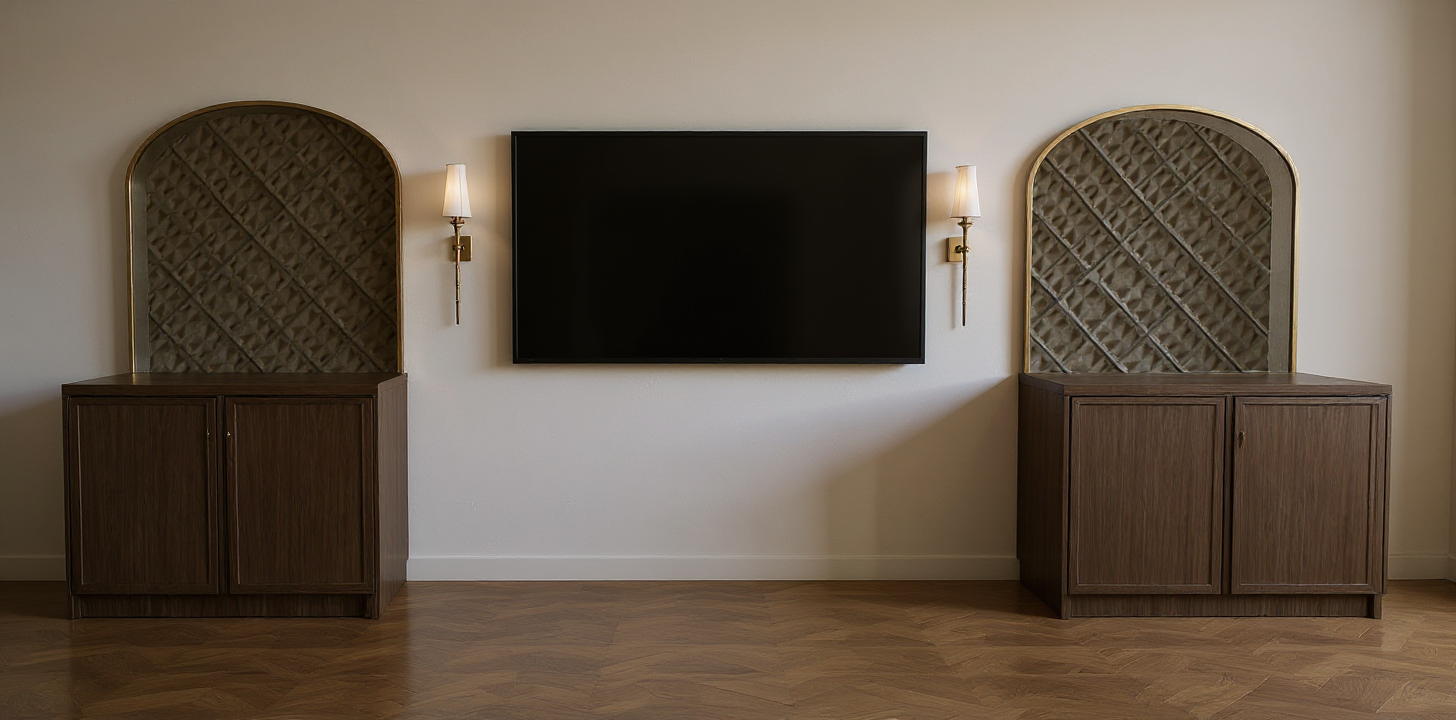a highly photorealistic warm timber interior wide angle living space cinematic interior render natural color grading scandinavian japandi influence realistic textures true to life scale and proportions professional architectural photography feel quiet editorial composition warm wood floors