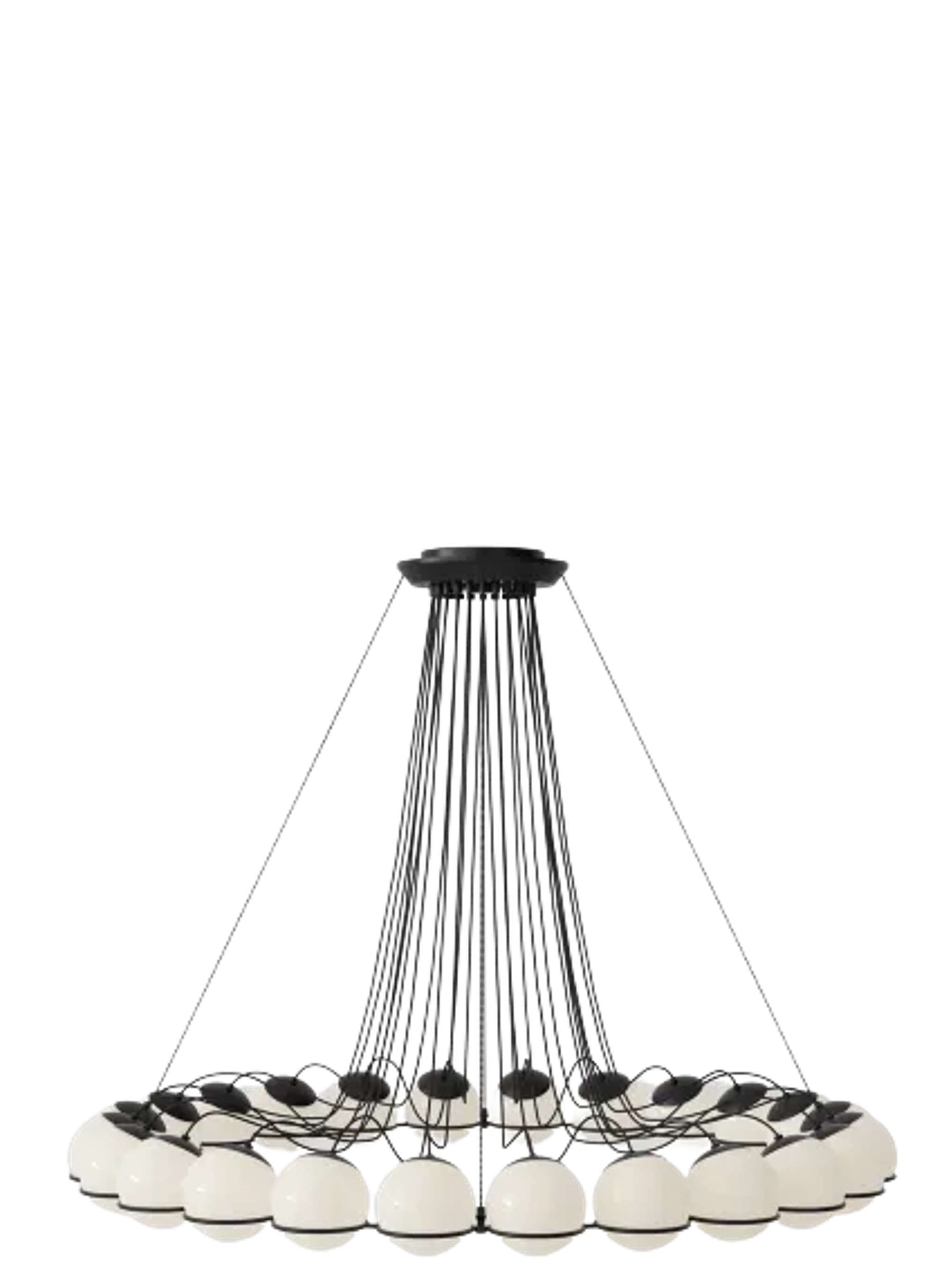 create a 3d model for sketchup of this elegant lamp made of very fine chains and white glass spheres the lamp should have a delicate sophisticated look with thin metallic chains supporting multiple smooth white glass balls that softly reflect light