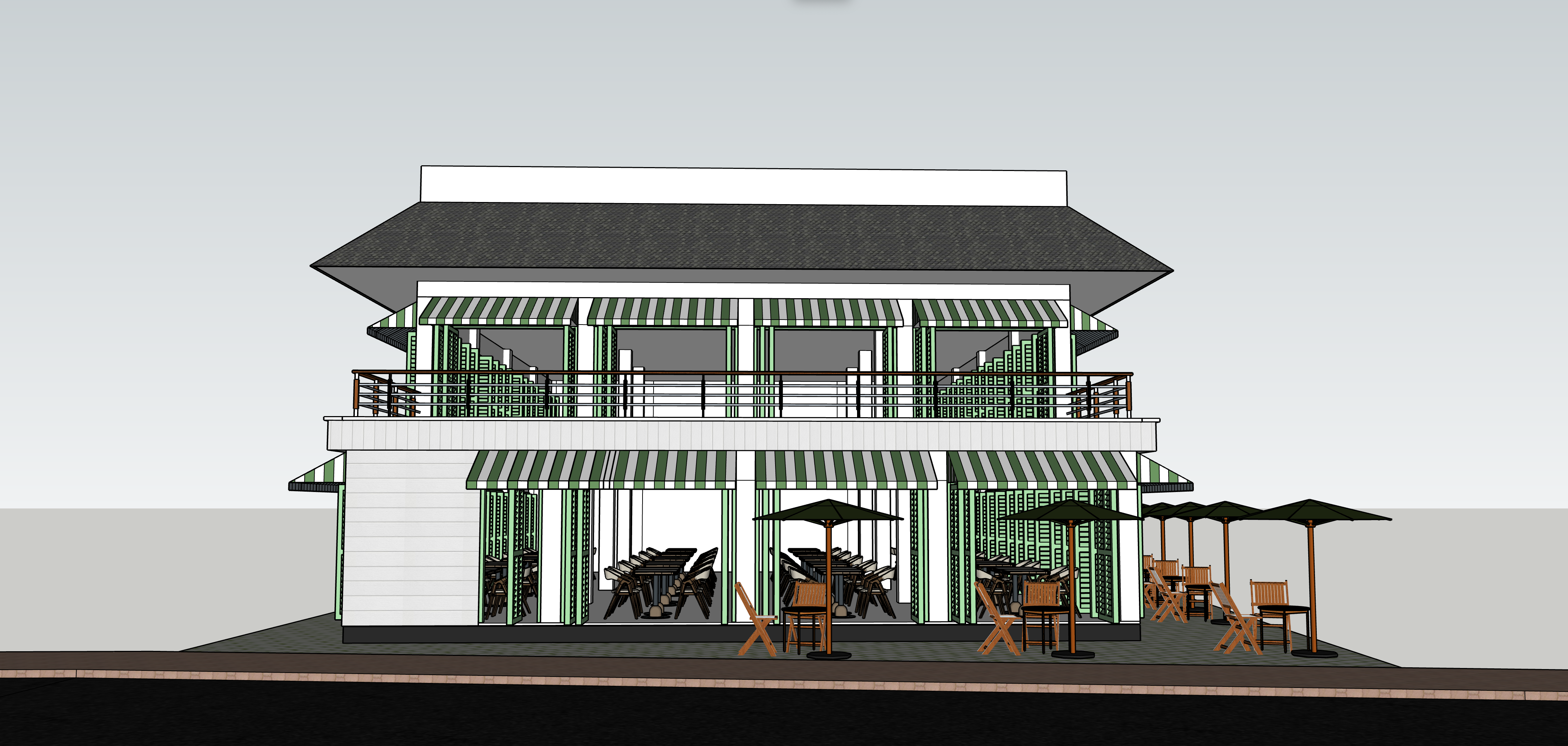 render the raw 3d architectural drawing into a realistic eye level perspective the project is located in a hillside neighborhood of labuan bajo facing the sea in front of the building show a small local road with pedestrian activity blending naturally into the neighborhood setting behind the building depict the back of the hill with dense tropical vegetation and rocky textures suggesting a natural cliff terrain surround the site with neighboring houses to convey a coastal residential atmosphere highlight warm tropical lighting realistic material finishes and the calm sea horizon to evoke the character of labuan bajo s hillside environment
