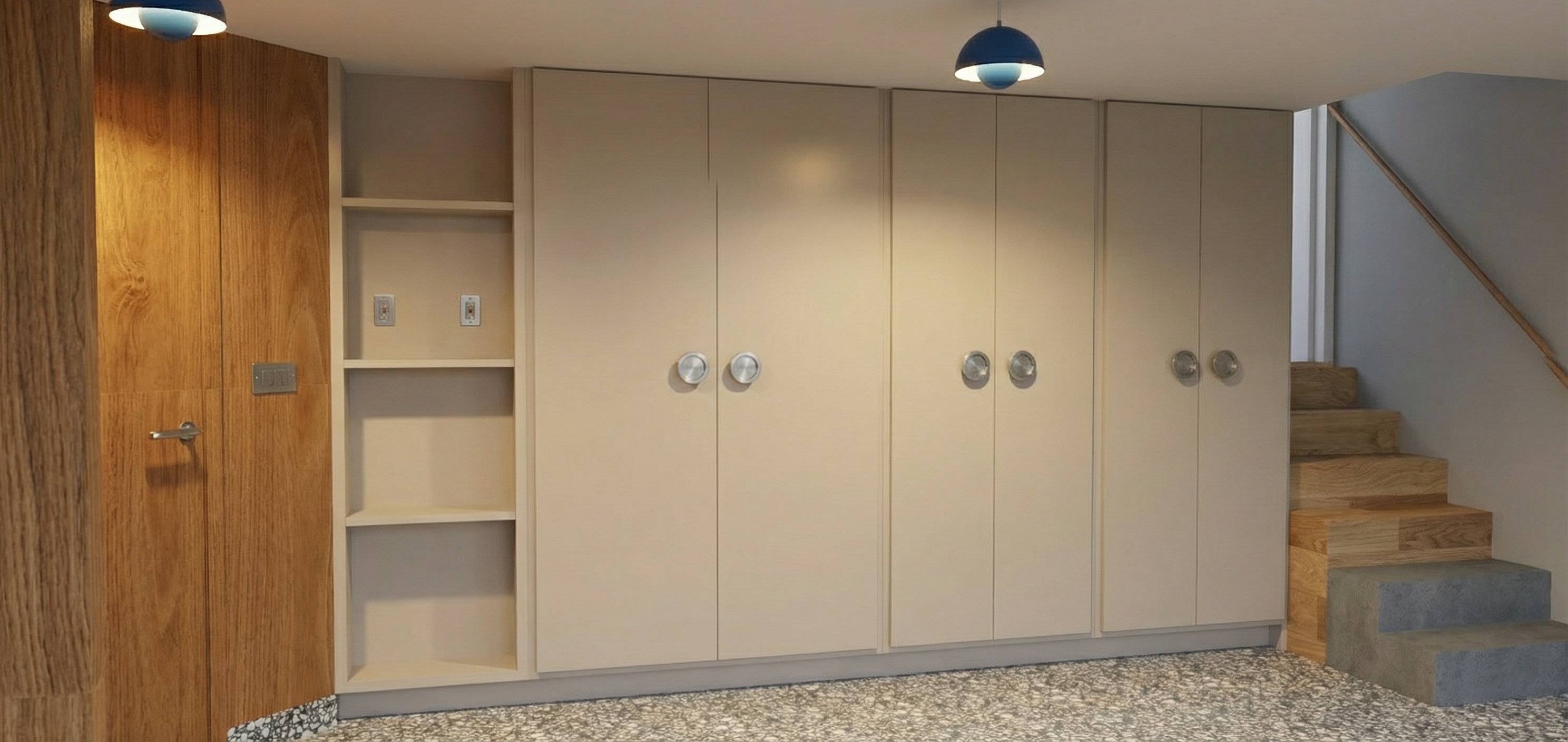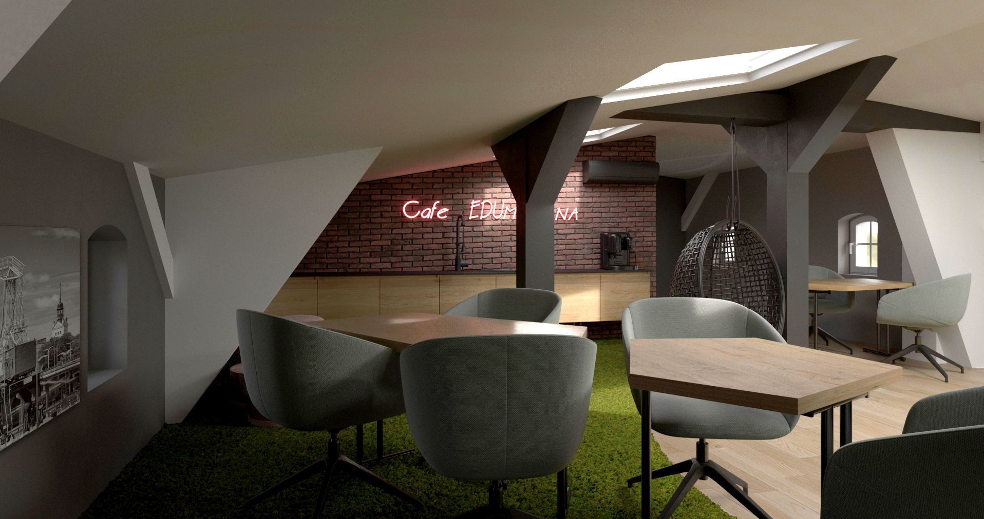improve realism friendly office relaxation and meeting area two small designer poufs placed below the artwork add some designers lighting