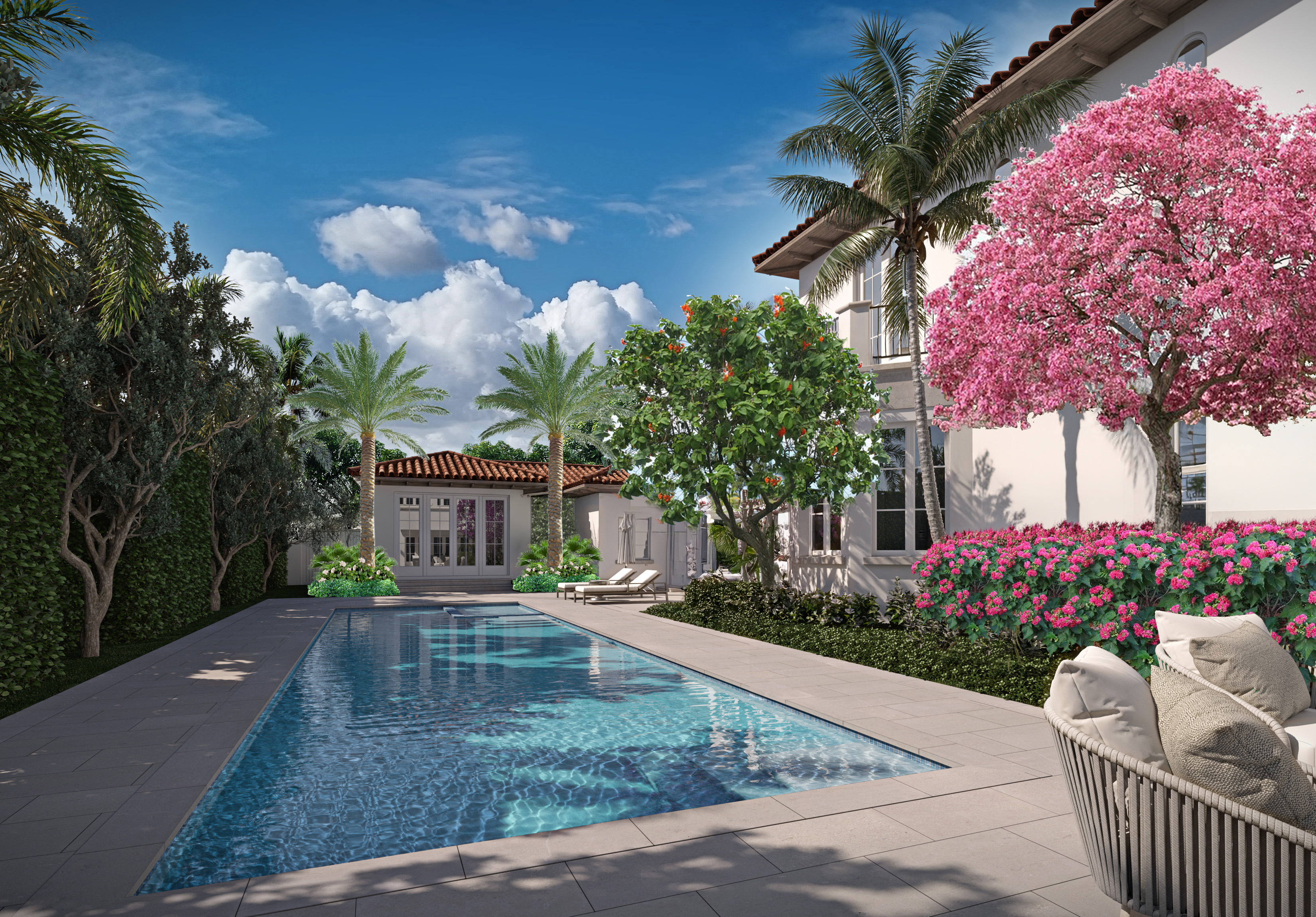 change the paving pattern around the pool so it is on a diagonal with a border around the pool and a border around the perimeter