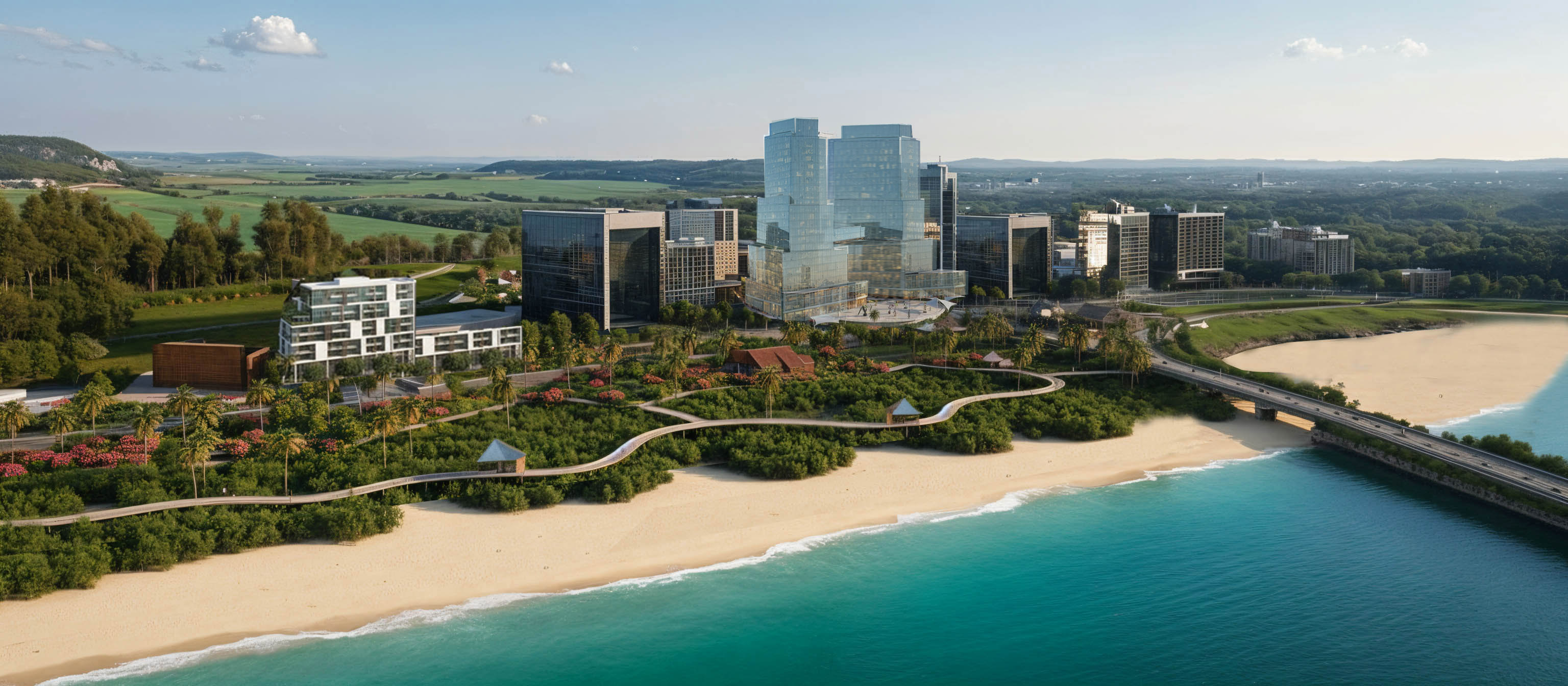 we are looking at a wooden modern and glass building on the ground floor it contains a food court and on the first and second floors there are vip areas this wooden structure is enclosed inside a 35 meter high atrium made of a mesh structure with arabic inspired patterns keep the same volumetric shape and proportions as seen in the reference image provided
