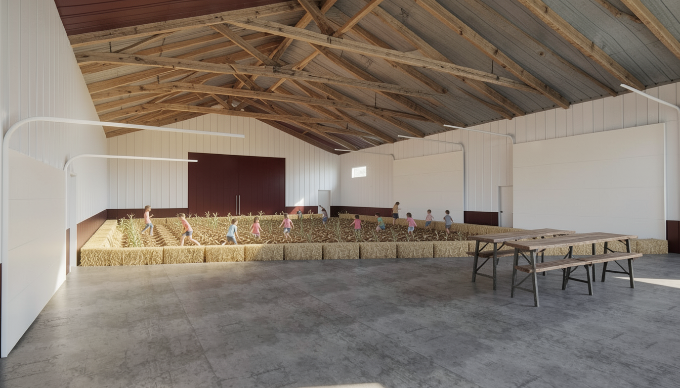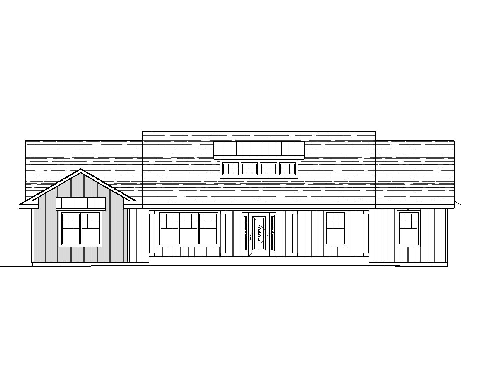 create a realistic looking rendering with mature trees behind the house and nice landscaping in front siding colors to be blues and grays